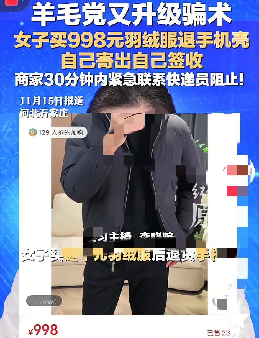 你胆儿也太肥了 是谁给你的勇气这么做 998元羽绒服退货,寄回的竟是个手机壳?这操作不止贪小便宜这么简单,你算是把7天无理由退货玩明白了。 填商家地址、留自己电话,还让快递员直接签收扔掉,步步都在算计,你是看宫斗剧来的灵感吗? 还好快递员留了录音,不然商家真是有嘴说不清。遇事就拿大学生当借口,要知道诚信面前人人平等,这种调包退货根本不是失误,而是涉嫌欺诈的恶意行为。 这种人真该被列入黑名单,不然只会让老实商家寒心。你们觉得,该怎么约束这种恶意退货的行为,才能守住买卖双方的公平?退货衣服 辨别假羽绒服 网购羽绒服陷阱 服装快递退货件 网购退件 退货绝招 网购
