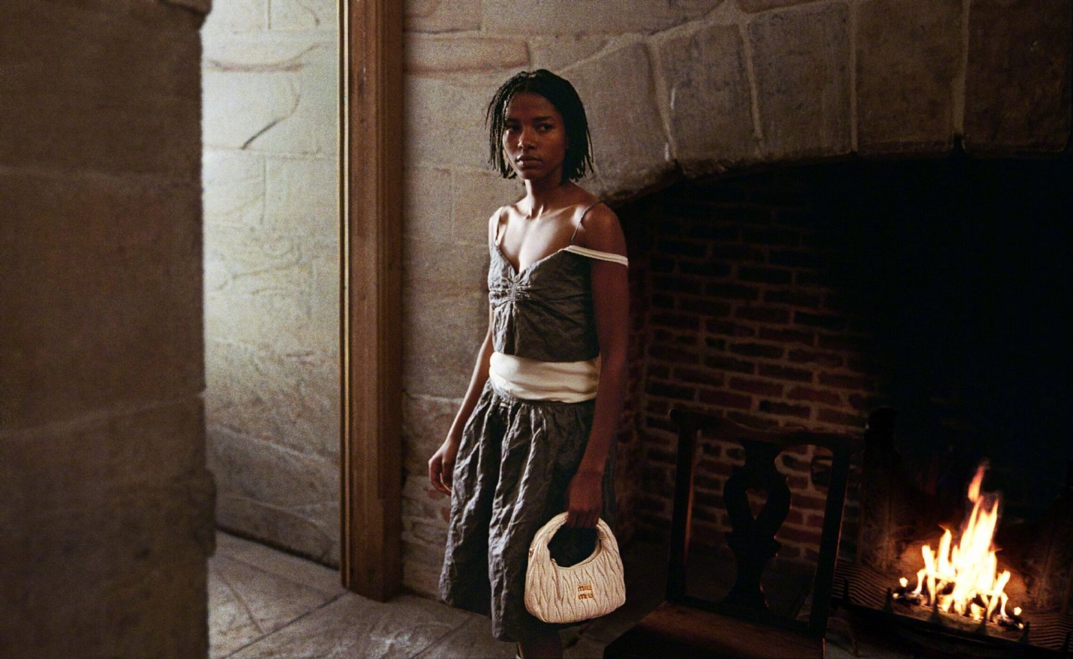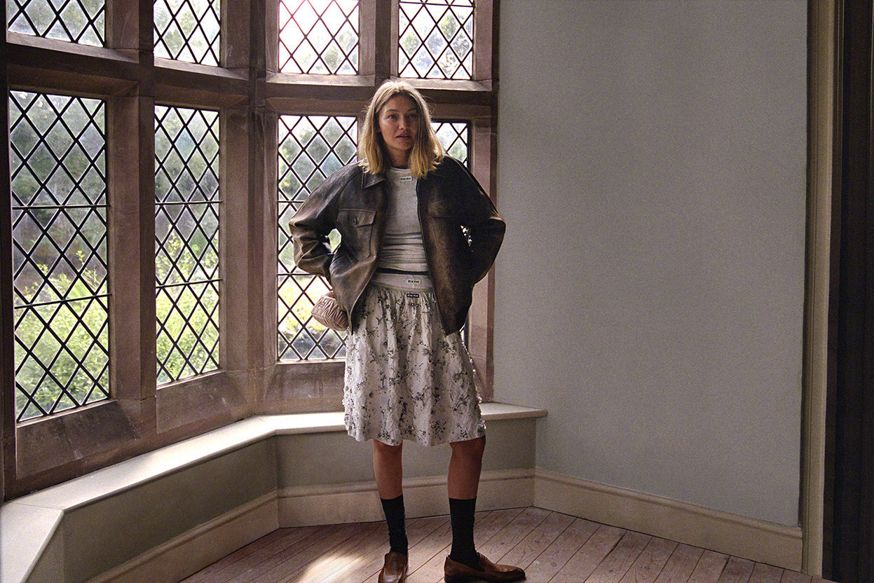 Miu Miu Holiday 2025 Campaign 假日系列广告拍摄于英国伊丽莎白庄园摄影师Angela Hill掌镜超模Gigi Hadid、Dede Mansro、Viola Sharp及国模雎晓雯演绎大片采用Super 8摄像机拍摄并以胶片呈现
