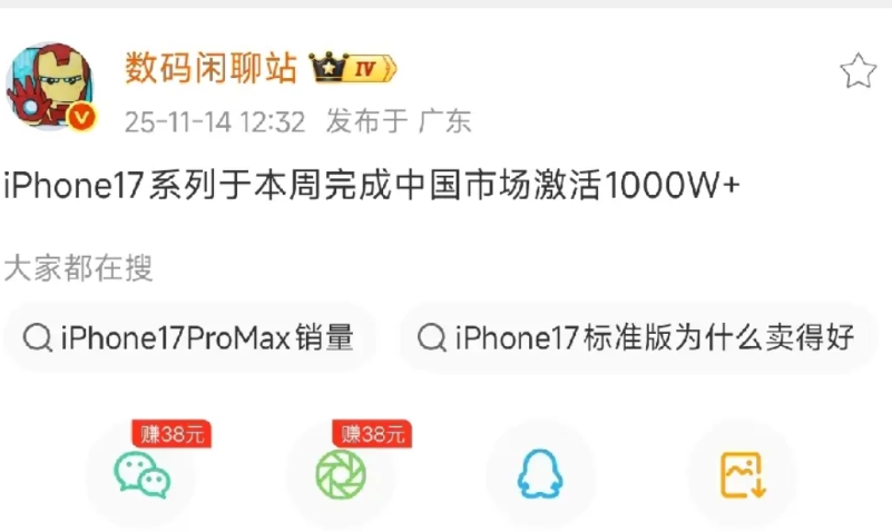 iPhone17系列中国市场激活1000W+ ,接下来看华为Mate80系列了