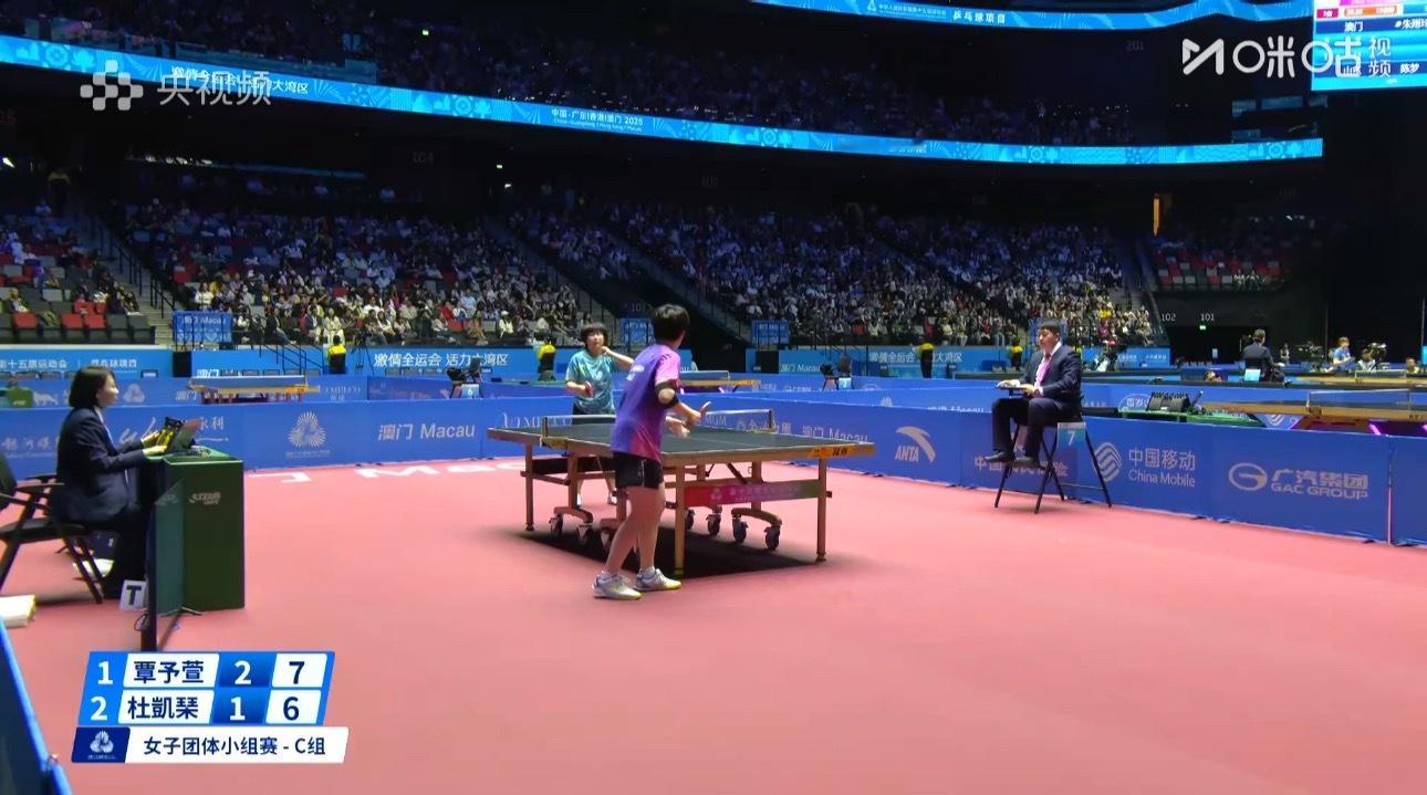 2025大湾区全运会女子团体C组北京2-2香港覃予萱3-1杜凯琹(11-8 11-4 3-11 11-7)