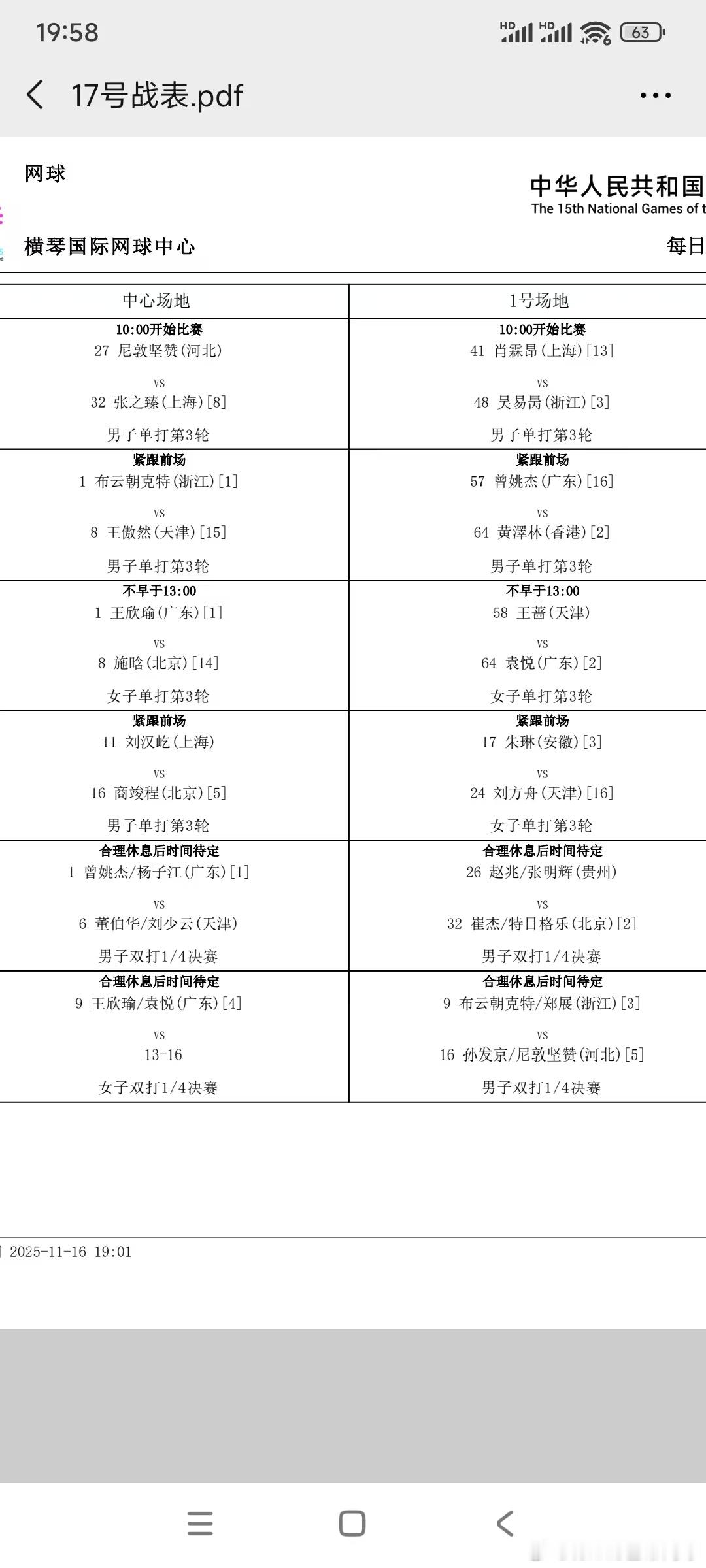 全运会16强明日赛程王蔷vs袁悦居然安排在1号场地,卫冕冠军vs主场2号种子没有安排中心场1号场地没有直播信号,可惜