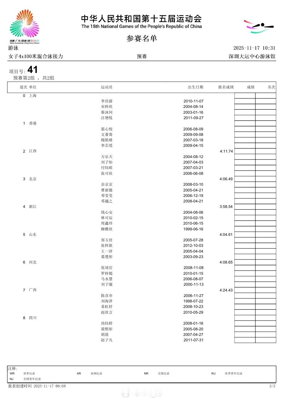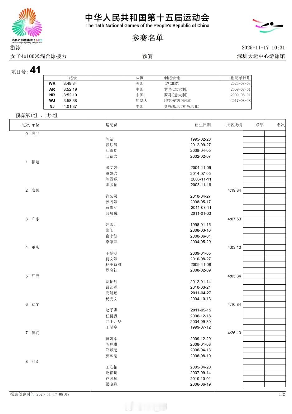 女子混接预赛阵容 浙江:钱心安、林可辰、周鑫垟、柳雅欣广东:汪雪儿、张阳、俞李妍、李家萍