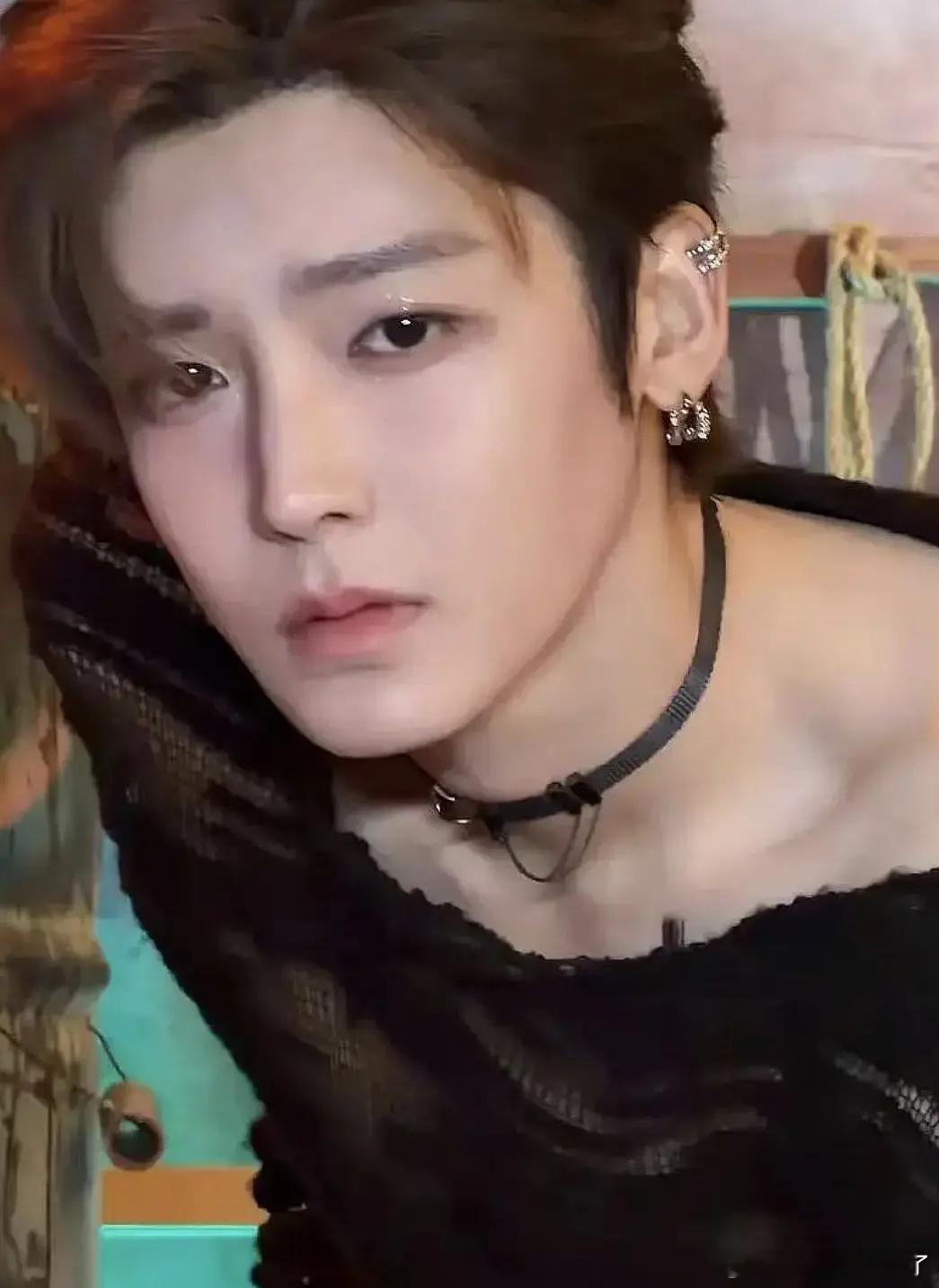 侯明昊那气场,真的是甜野交织,每一个细节都让人心动。黑色choker勾勒出完美锁