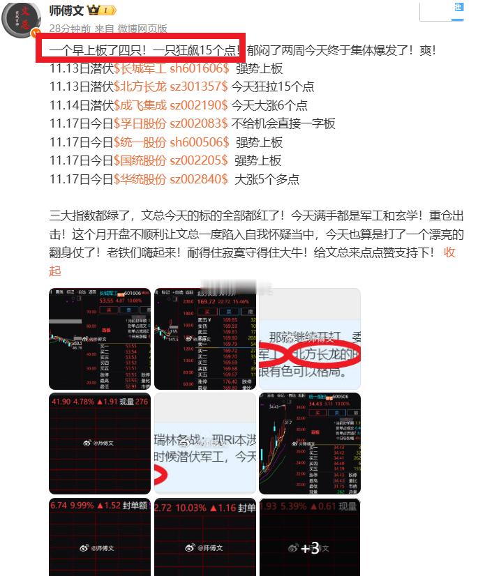 上周四潜伏的军工标的起成效了!$长城军工 sh601606$ 迅速上板!
