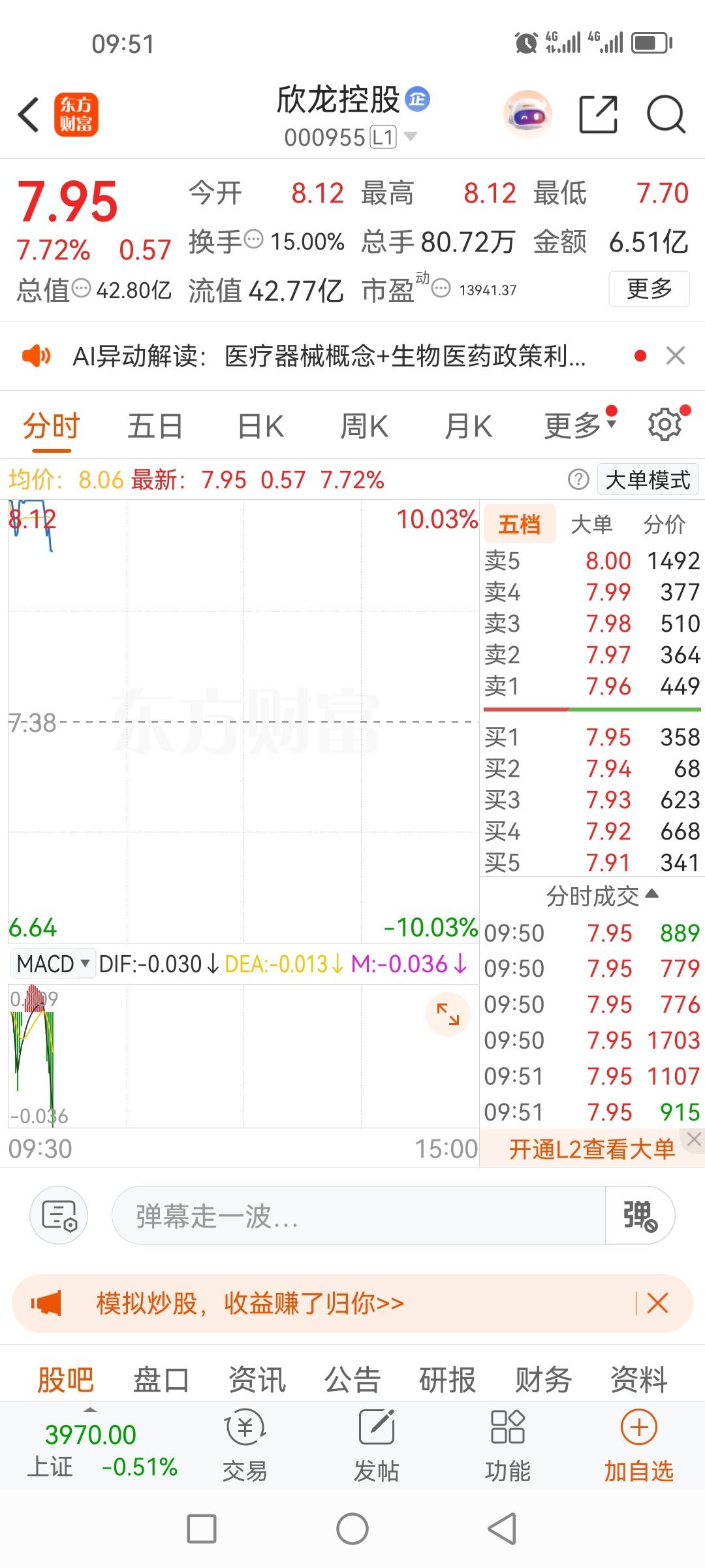 欣龙控股000955,今天又是没停稳,不过依然是艳阳高照!