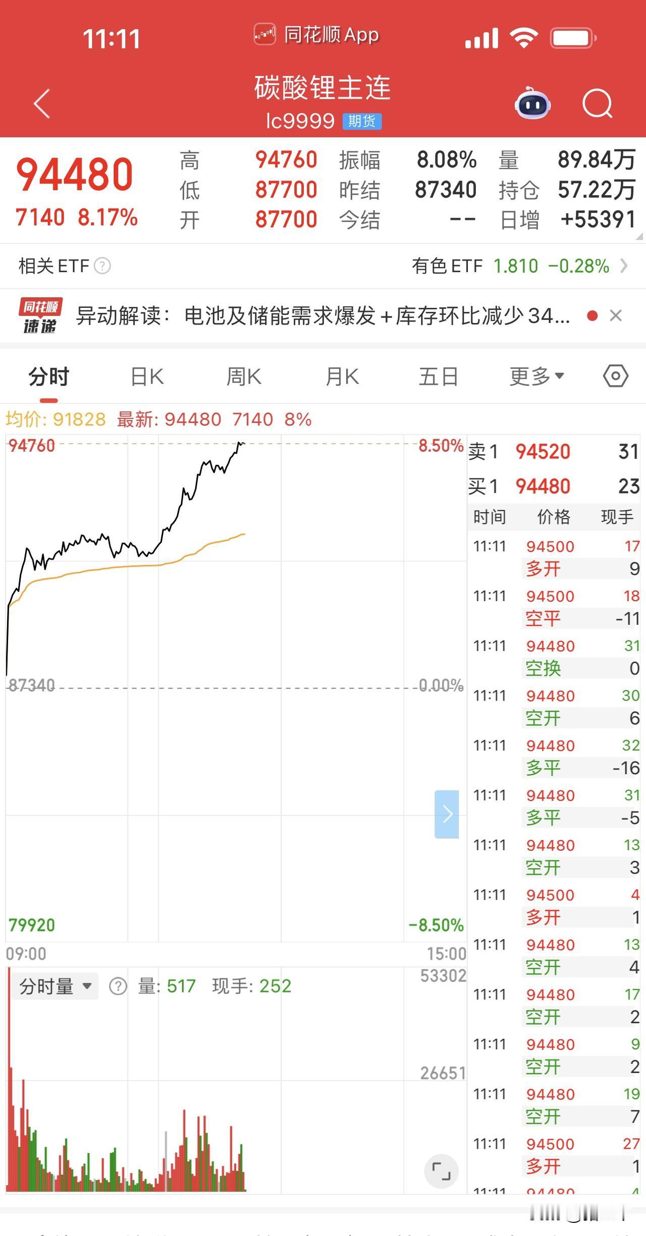 碳酸锂期货主连大涨超8%, 分析师给出了2026年15万元/吨目标价! 涨价代表需求紧张代表预期代表行业人气, 在构筑漂亮的戴维斯双击预期下, 储能电池主线逻辑已经成了, 先涨的是上游, 可以看到锂矿资源股: 天齐锂业、中矿资源、赣锋锂业强势回归, 华友钴业等核心小金属也闻风起舞。 然后是正负极材料: 容百科技、杉杉股份、中科电气。 等行业沸腾要闹着扩产的时候, 锂电设备g先导智能再来收尾! …