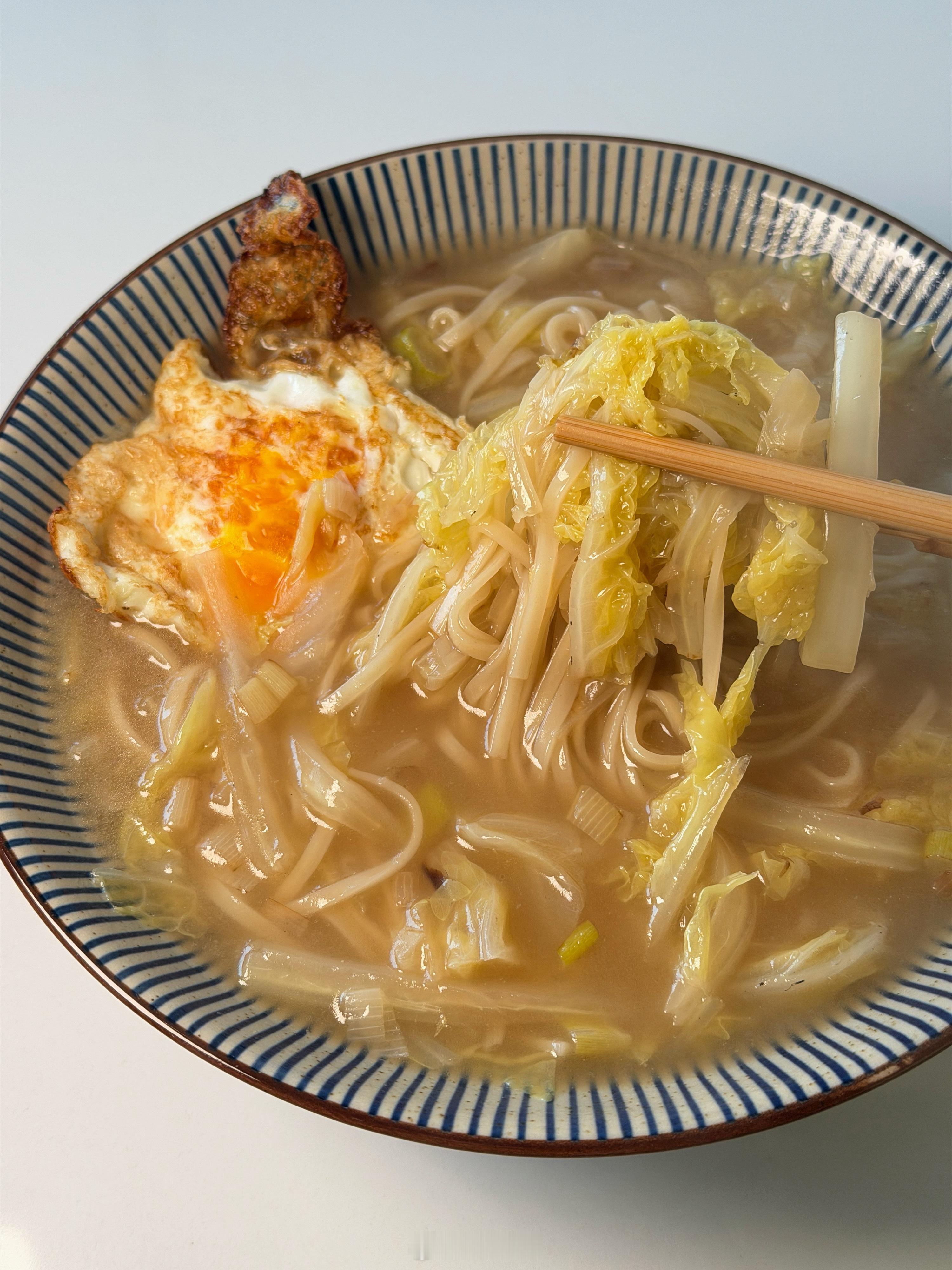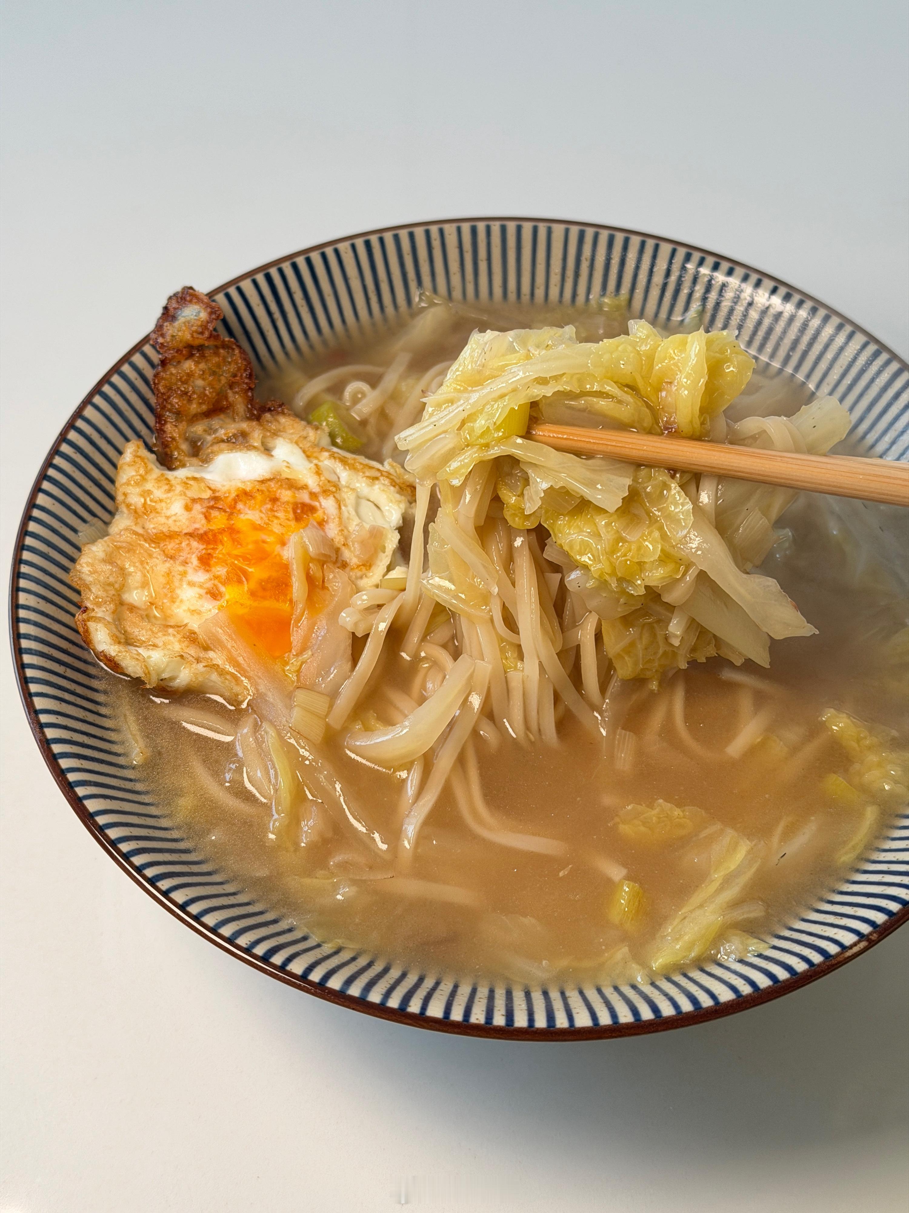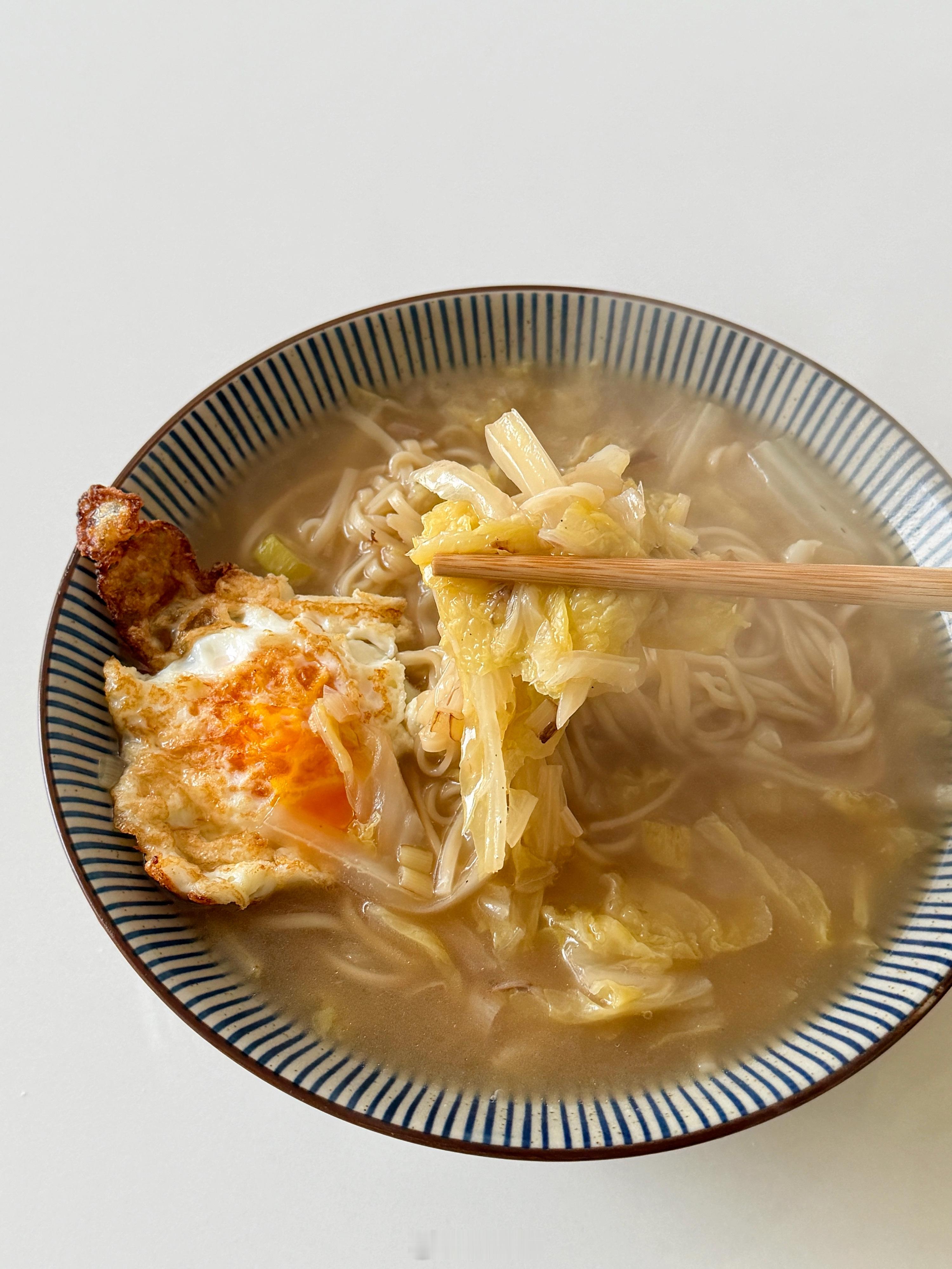 天冷了,早餐开始吃热乎的了,这碗白菜炝锅面充满妈妈的味道!
