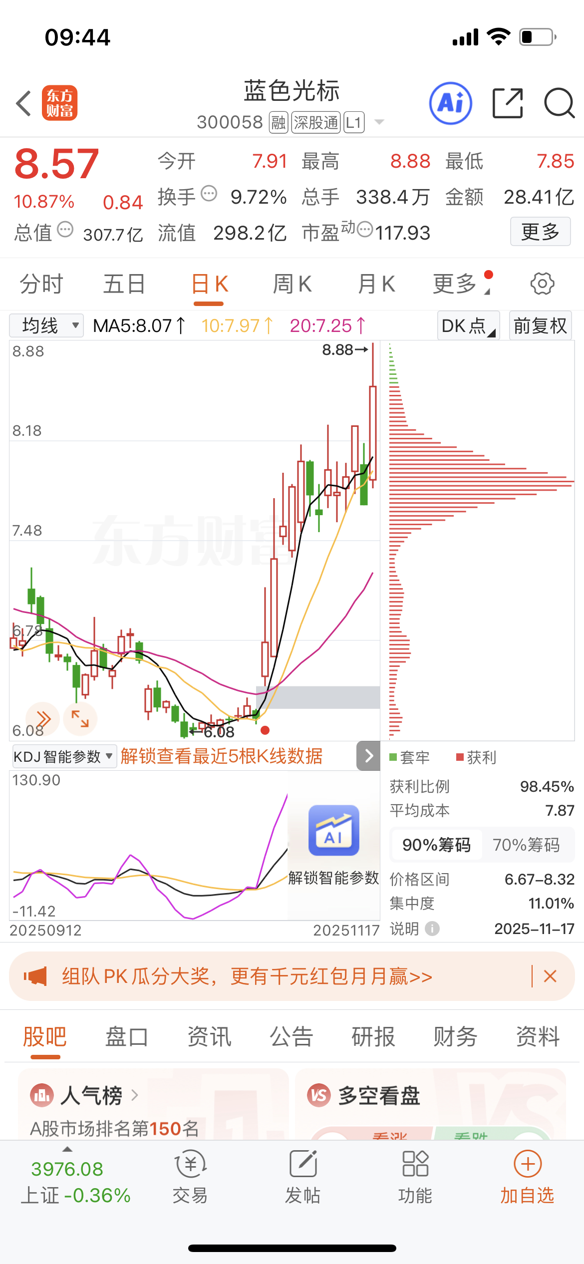 蓝色光标 sz300058[股票] 可惜卖飞了