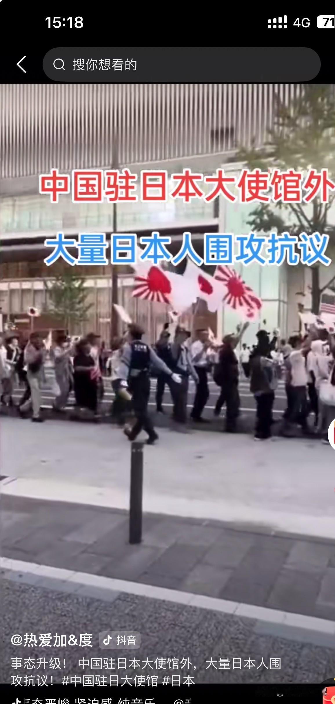 中日两国民众表现截然不同 倭国女首领强行介入大陆台湾事件,公然宣称,大陆如果动台湾日本将武力介入,在中国驻倭国领事薛剑发表了严厉的驳斥。 这下日本炸了窝了,大量市民涌到中国领事馆示威游行、围攻抗议。 中国政府告诫民众,近期不要去日本旅游,然而并没有阻挡住向往日本的国内某些人,仍然觉得倭民很可爱,倭国很美丽。结果在倭国街头遭到倭民围攻,此刻不知道这些天真的国民内心有何感想! 此次中日冲突,国内人民表现的相当理性,并没有任何人去围攻在华的倭人学校,更没有人去理会那些早已看不出国籍的倭人,每天平和的关注事态发展。 因为我们知道,越是在这种时刻,越要听从国家的安排,相信我们的政府,早已未雨绸缪,一切都在掌控之中! 反正我们就一个想法,只要国家一声号令,要人给人、要命给命! ————————