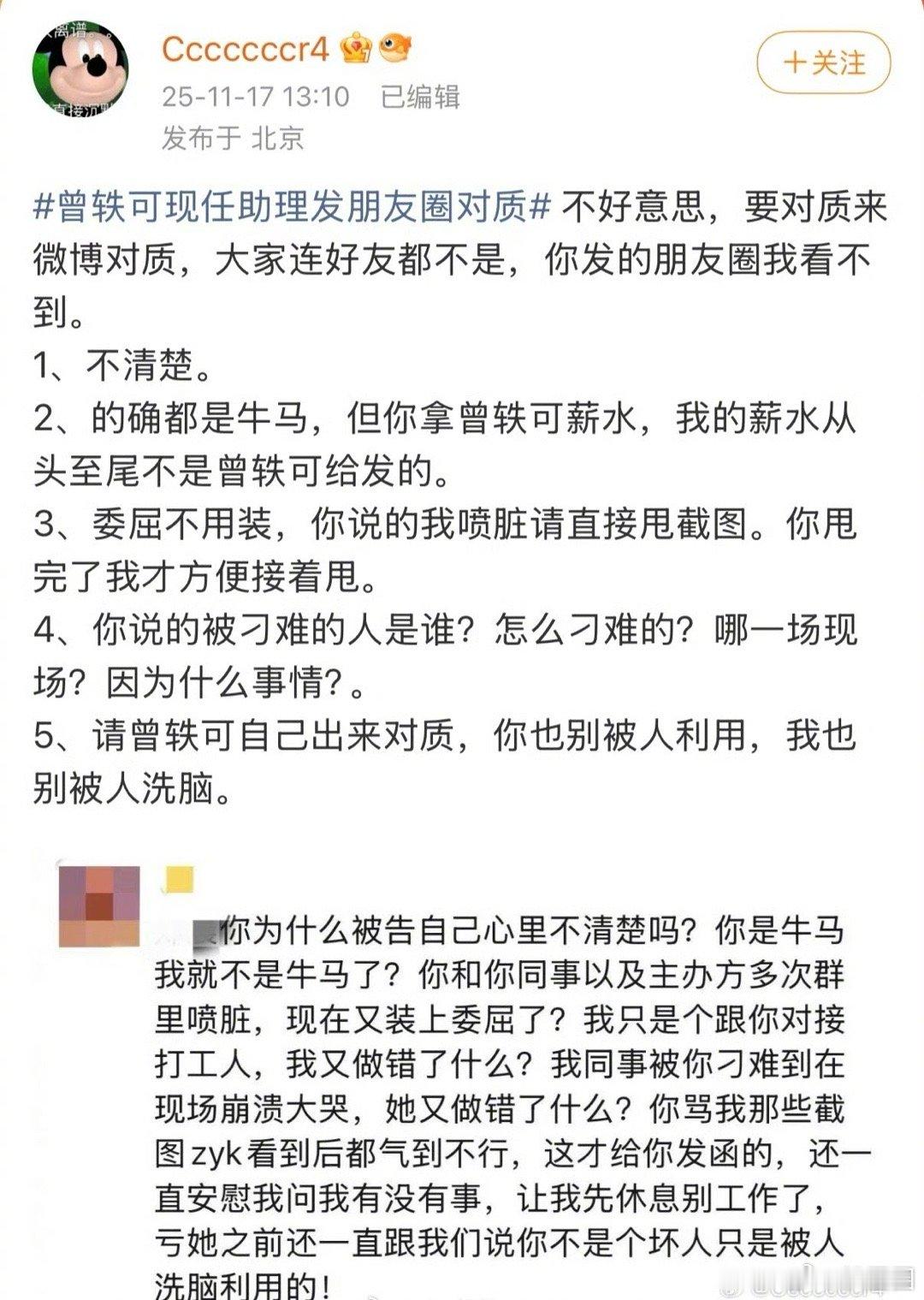 娱乐圈又现职场争议!前工作人员晒长文列细节,现任助理发文回应,多方声音引发网友关