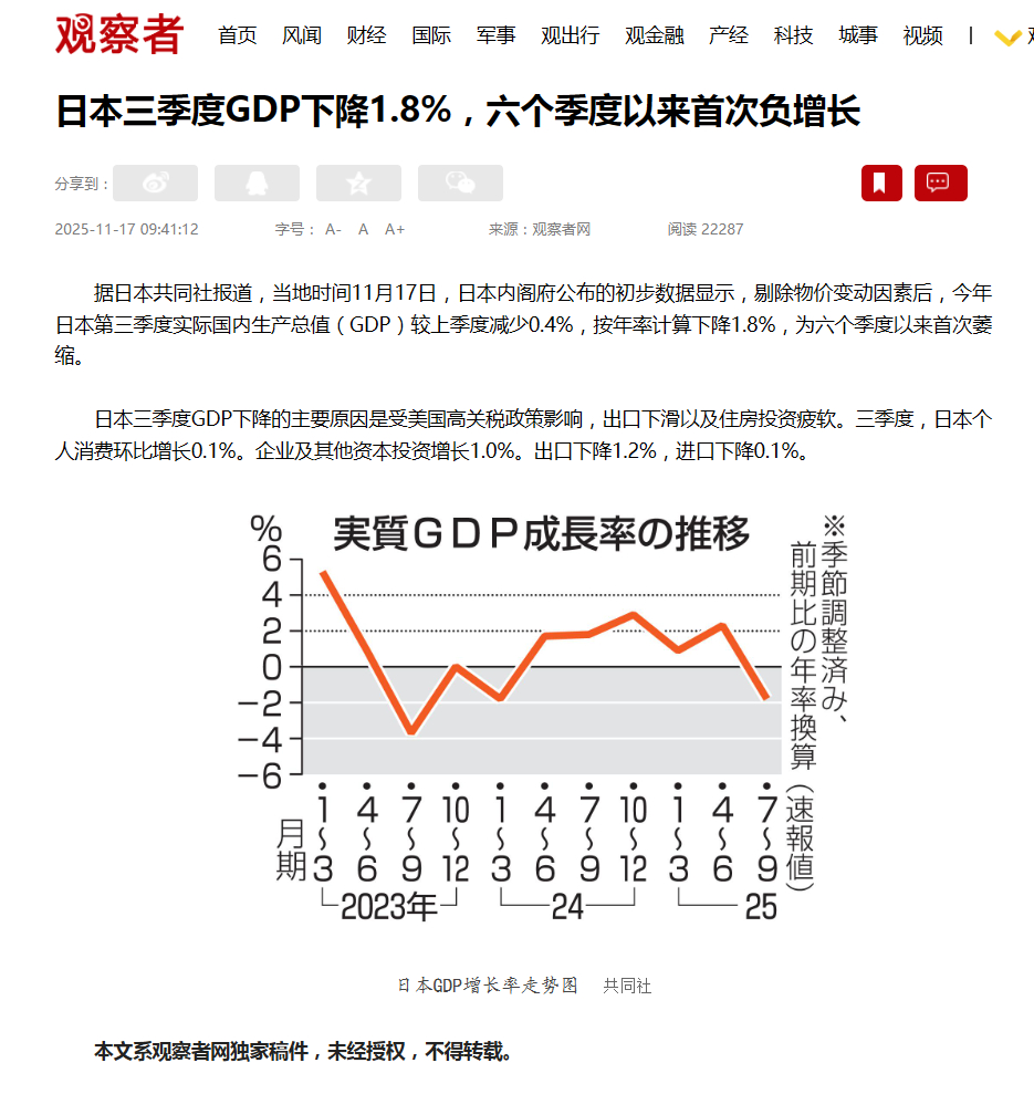 无人在意的角落,日本三季度GDP下降1.8%,六个季度以来首次负增长不过降幅稍微低于预期,靠政府支出扛着