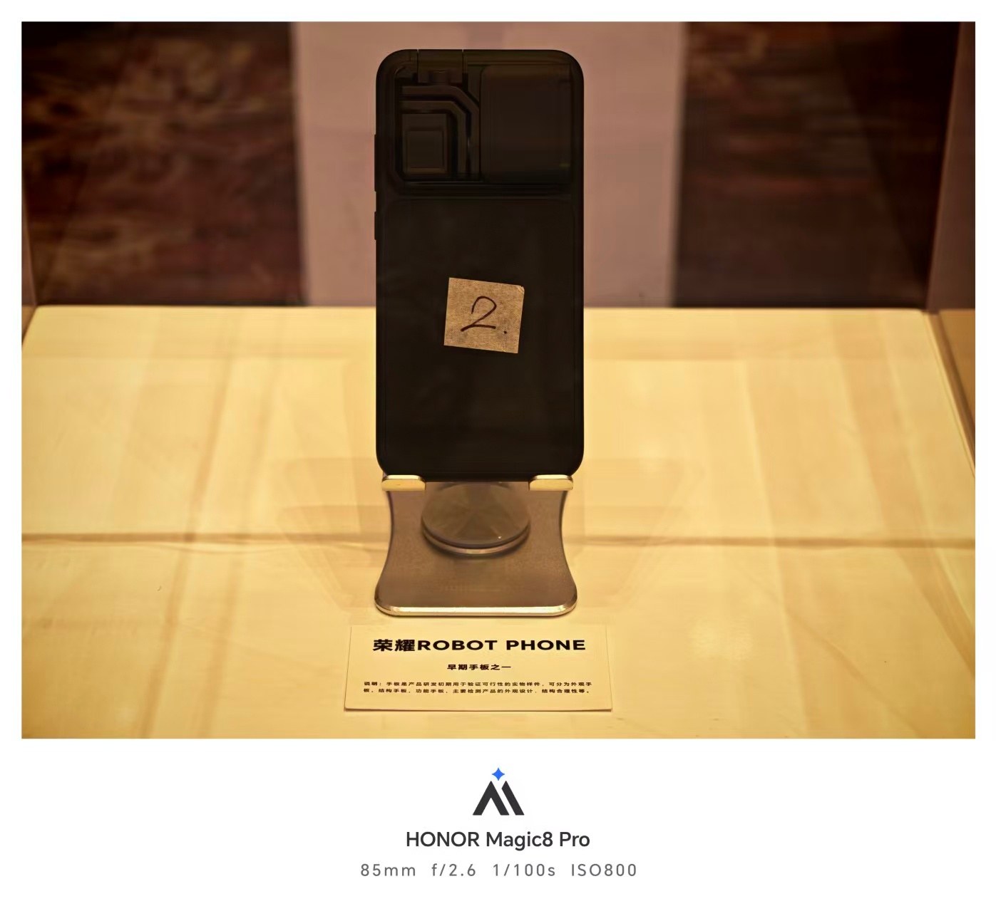 今天 展出了「荣耀 Robot Phone」好几版原型机,这个背部标着 5 号的,应该是最接近量产版的。希望能早些上市,瞅瞅正式产品到底咋样。