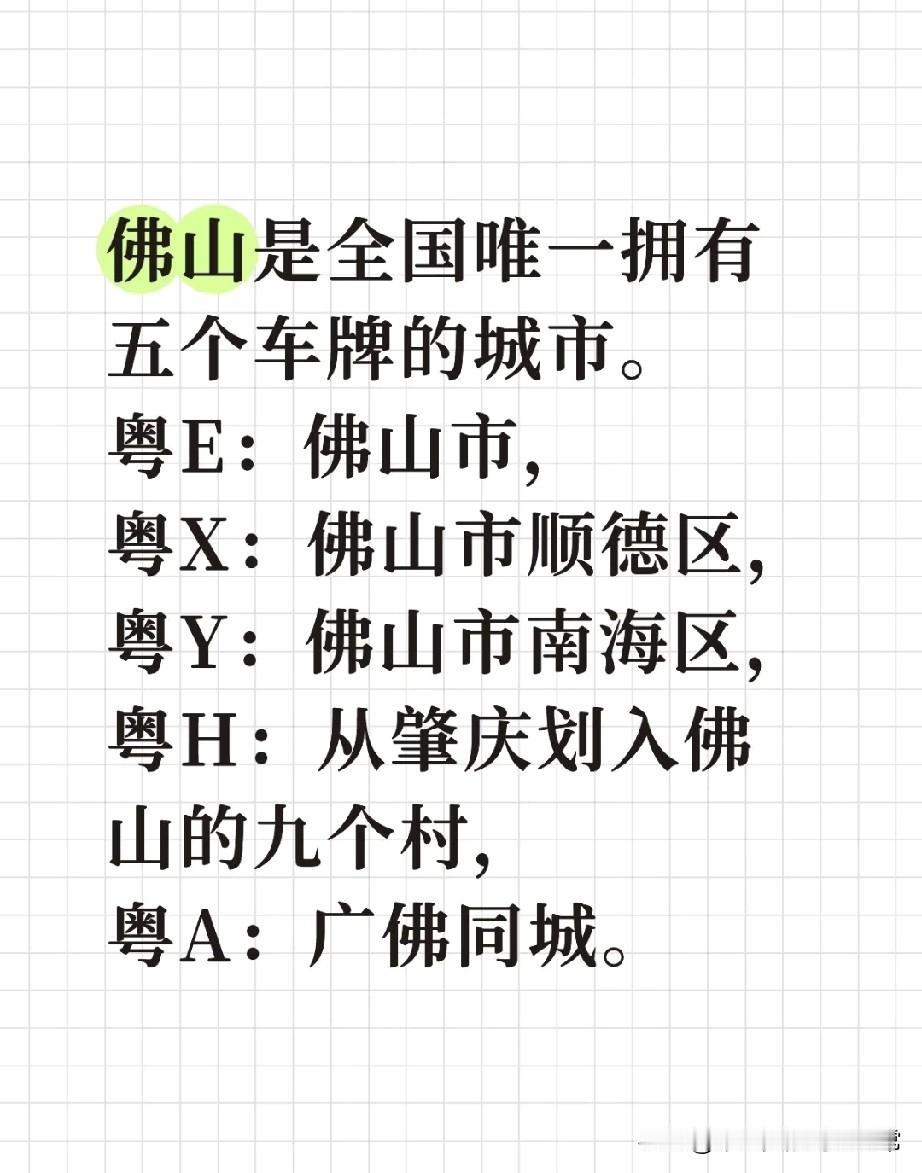 佛山凭啥有5个车牌,连肇庆的粤H都收编了 谁能想到,一个佛山能凑出5个车牌?粤E是全市通用,顺德单独占个粤X、南海拿了粤Y,连从肇庆划过来的9个村都有专属粤H,加上广佛同城能挂粤A——这哪是地级市,分明是“车牌大户”! 有老佛山说“顺德南海当年是县级市,车牌本来就独立”,但外地网友懵了:“去佛山出差,光认车牌就得做笔记,这也太凡尔赛了吧?” 评论区有人酸“经济强就有特权”,可也有人怼“人家是真·散装城市,多个车牌方便管理”。 话说回来,佛山这“一市五牌”到底是城市实力的体现,还是把简单事儿搞复杂了?你们觉得这种“专属车牌”是有必要,还是纯属炫技?