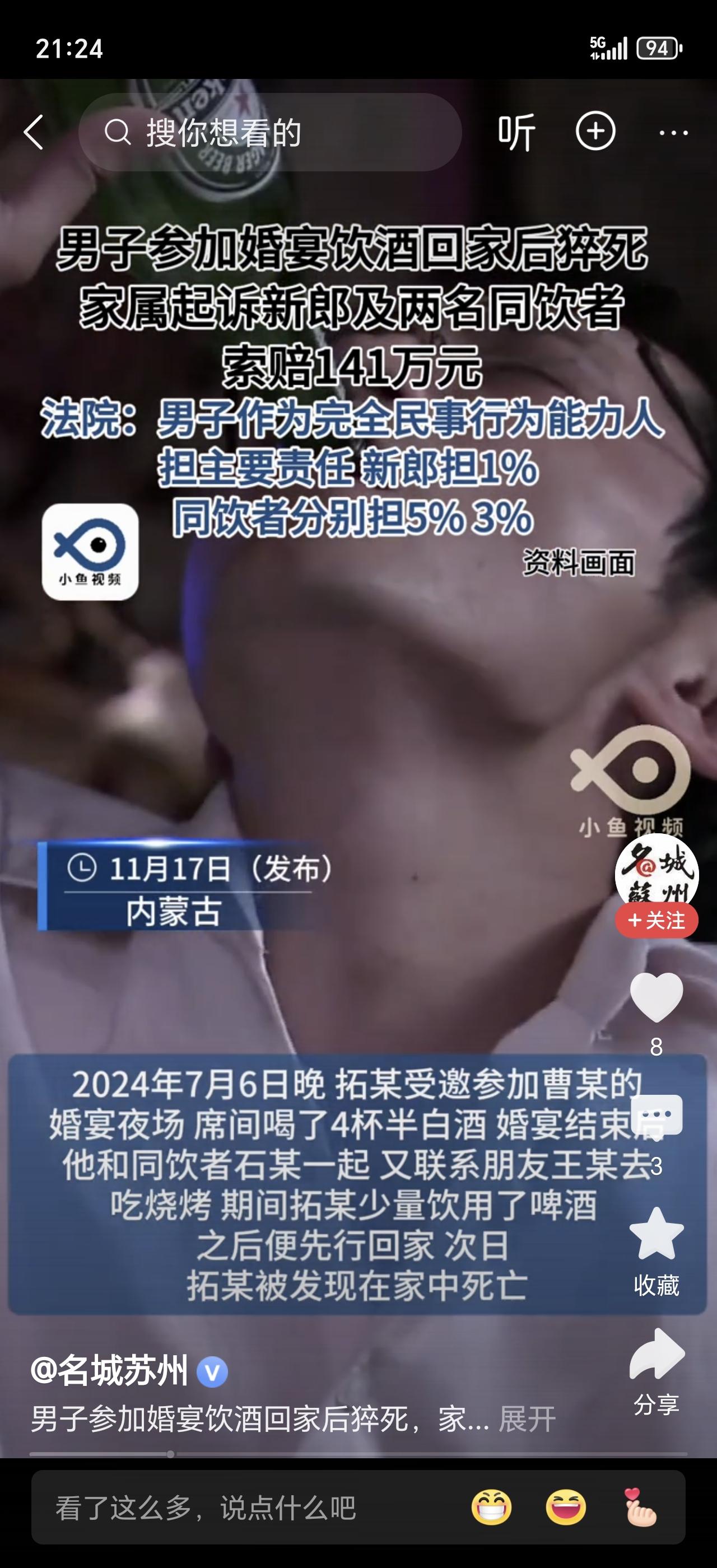 谁能想到一场热热闹闹的婚宴,最后竟闹出人命还惹上官司? 男子赴宴喝多酒后猝死,原本的喜事儿瞬间变悲剧,最让人唏嘘的是,新郎和同饮的亲友都要担责。本来喝酒是图个喜庆助兴,可有些人劝酒就没个分寸,硬灌、起哄,明知对方喝不下还不依不饶。 酒桌面子哪有生命金贵?成年人该有分寸,劝酒不是热情是添乱,看到别人喝多了及时拦一把,别抱着“喝多没事”的侥幸。 这事儿也给所有人提个醒:喝酒量力而行,劝酒适可而止,别让喜宴变遗憾,尊重生命才是真人情。喝酒死亡赔偿 聚餐猝死