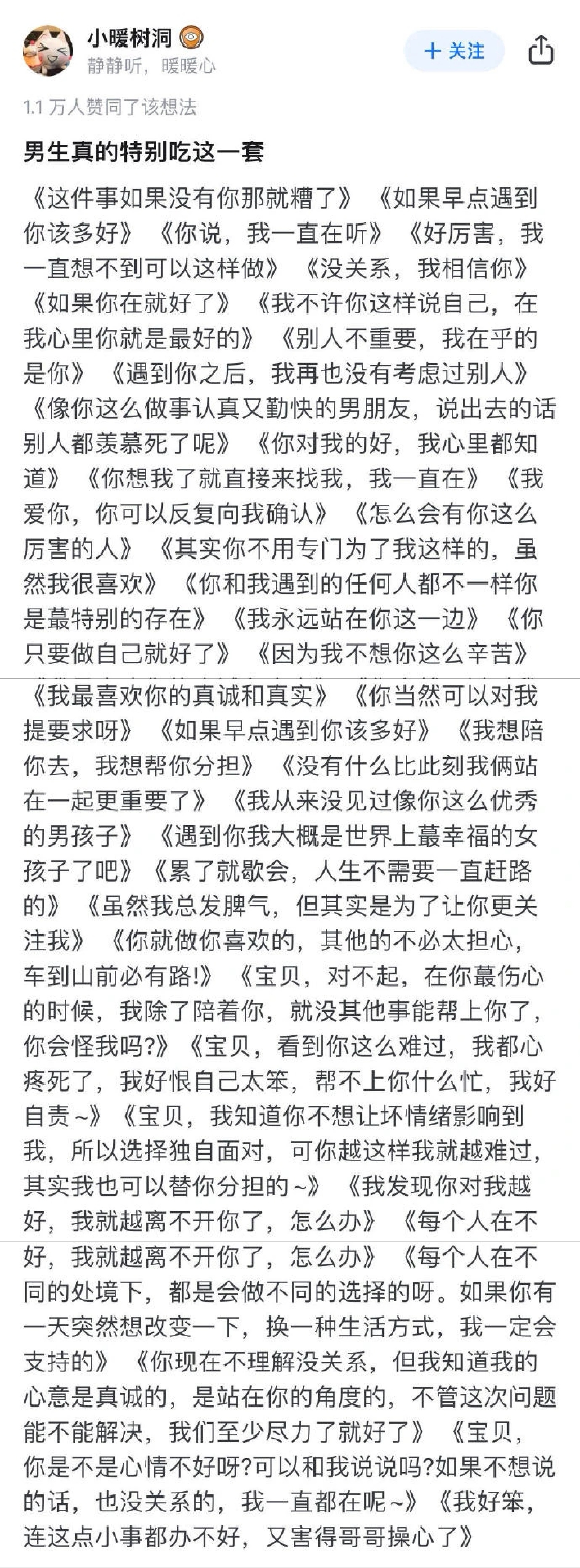 当女的对你输出这些套路时,你要警惕起来;当男的对你输出这些套路时,你要警惕起来。别被一时的甜言蜜语浇灌地迷失了方向,确认真心再交出信任。感情在青春最富有的年纪,不怕输不起,就怕试错后不长记性。过多的伤害对成长无益,适当的清醒才能保持初心。