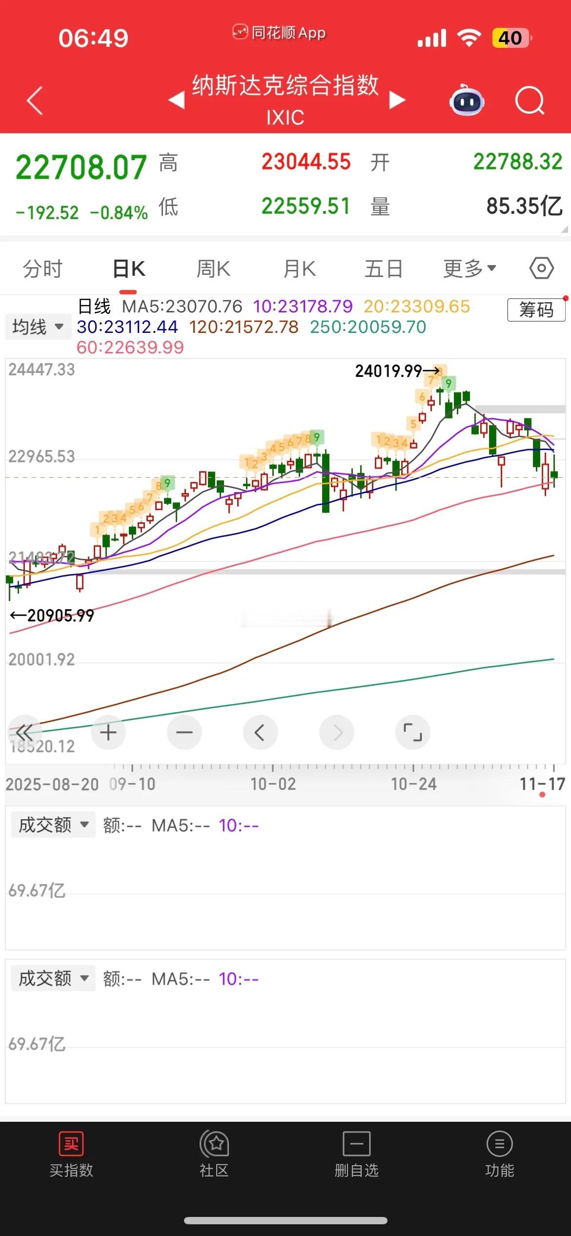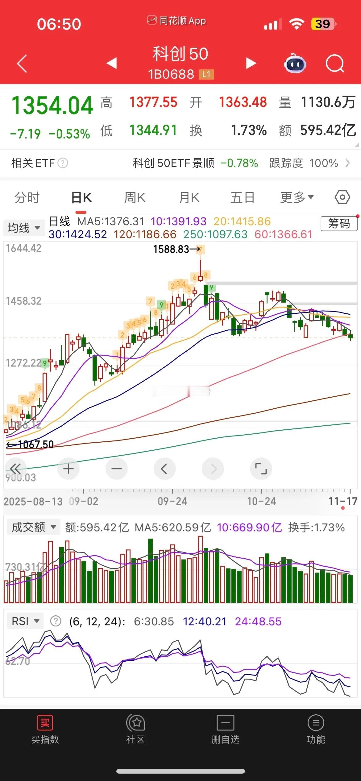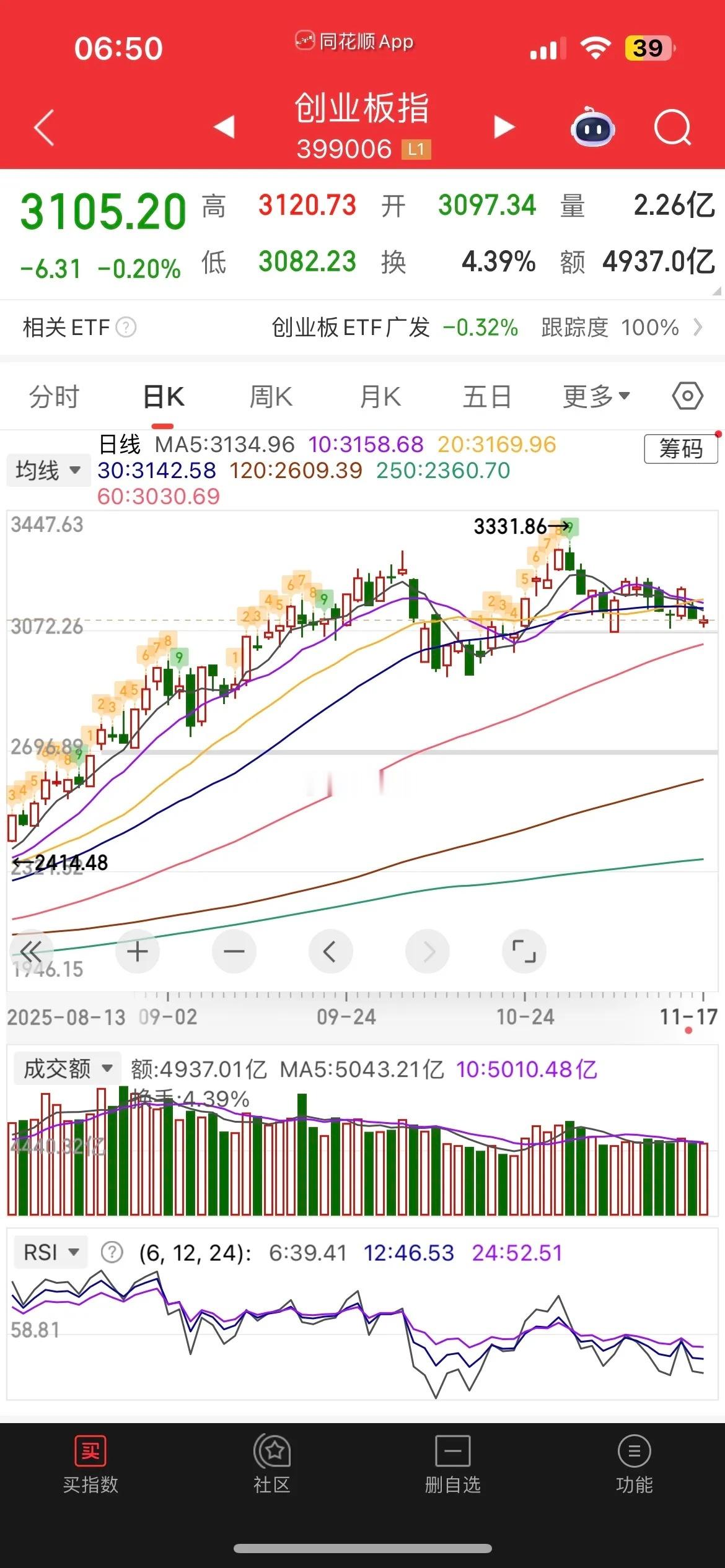 一觉醒来,美股大跳水,中概股普跌,纳指金龙指数跌1.2%,阿里大涨超2%,拼多多跌逾1%,京东涨近1%,哔哩微跌,百度跌近2%,阿特斯太阳能大跌超15%,晶科能源大涨超13%,小鹏大跌超10%,富时A50跌0.52%,恒生主连跌0.72%,三连阴,这样看今天我们大A估计又会大幅低开,而港股恒生科技,已经跌到半年线附近,今天看120日线能否支撑住,守住了问题就不大,不然难搞。昨晚美股高开低走,三大指数全线翻绿,道指跌1.18%,纳指涨0.84%,大型科技股普涨,英伟达、苹果大跌近2%,特斯拉涨超1%,台积电跌近1%,美光科技跌近2%,此前一度大涨超4%,西部数据大涨近3%,谷歌大涨超3%,市值逼近3.5万亿美元,再创历史新高,主要是巴菲特建仓谷歌,买入43.4亿美元,新进成为伯克希尔第十大重仓股,搞得昨天我们Al应用、软件都跟着起飞了。昨天沪指两连阴,并失守20日均线,趋势看整体偏弱,不过短线投机炒作氛围活跃,连着几天近百股涨停,小票微盘股再创历史新高,而内资昨天净流出近500亿、目前两市总成交只有1.9万亿出头,情绪比较低迷,板块上昨天锂矿股集体爆发,Al应用和华为算力等板块表现活跃,军工和煤炭也不错,而前期的主流小登科技CPO、半导体延续颓势,红利权重股也出现了局部补跌,也就是大金融,现在看市场唯一的亮点就是锂矿和存储概念,都是炒涨价逻辑,短期依旧还可以看,其它方向均是猫一天,狗一天,今天领涨明天说不定就领跌,目前看大科技双创硬不起来,市场就难有大起色,整体还是弱震荡为主,所以解铃还需系铃人,今天关键就看双创能否止跌企稳。点赞就是对峰哥最大支持!