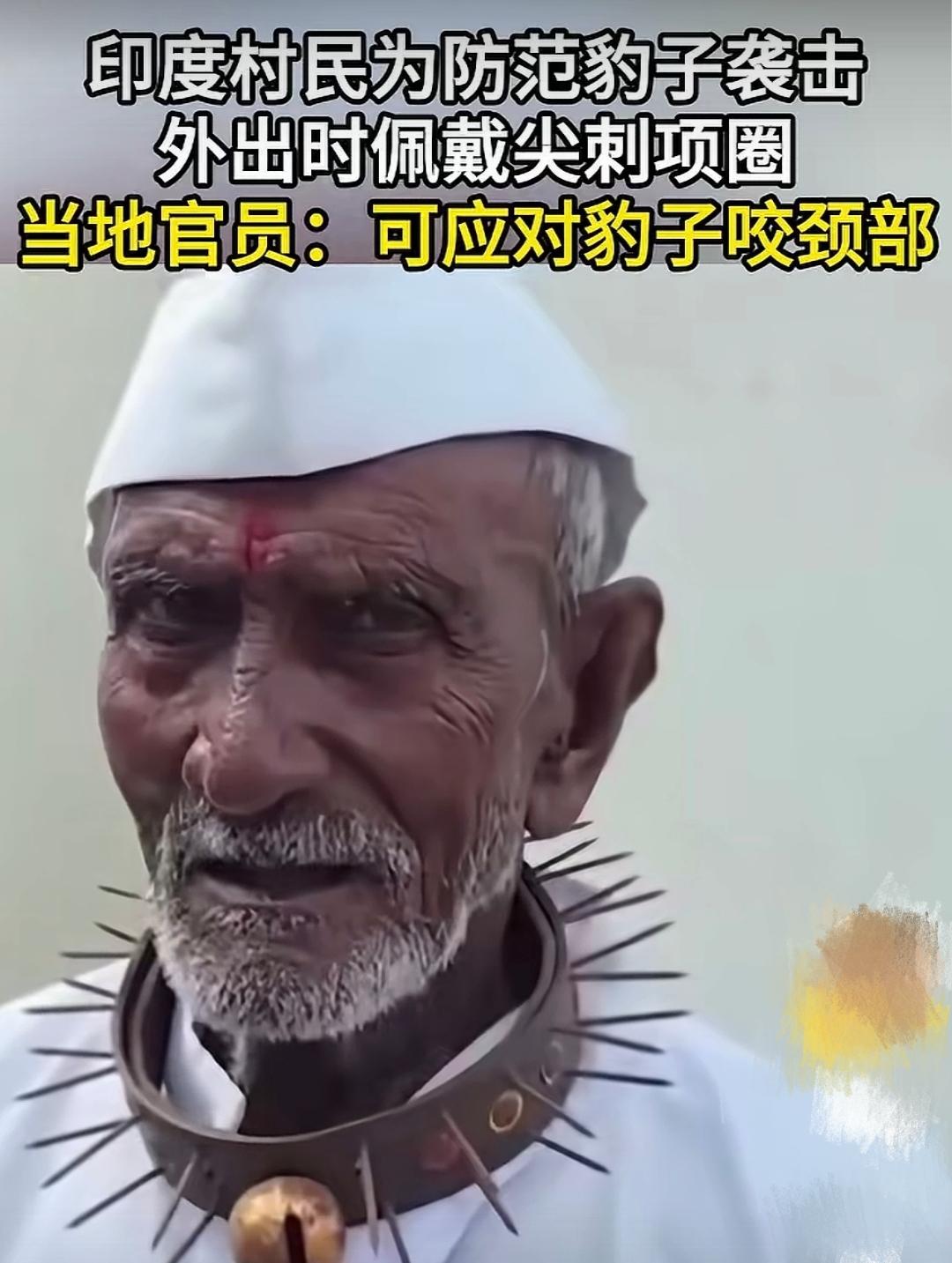 出门必须佩戴项圈。这不是时尚,而是“保命符!” 过去不到一年时间,印度17人死于豹子之口,41人受到不同程度伤害,最小的受害者只有13岁。 为什么要戴尖刺项圈? 印度村民心里清楚,豹子大多数攻击都是对着喉咙一口切断气管,被咬到后连喊救命的机会都没有。 为了活命,村民们把旧皮带拆开,缝上40毫米长的尖钉,这样一条“保命项圈”只需要50卢比。一家老小只要外出都得佩戴,哪怕碰见咬断手脚,至少还能保住一条命。 你不要认为这是小题大做,这就是现在印度某些地区的现实困境。随着国家人口高速增长,森林面积逐渐缩减,野生动物没了栖息之地只能往人类居住区里找转悠。 食物少了,虎、豹闯进村庄偷羊、掏鸡,甚至把人类当成猎物,有时饿急眼的豹子甚至连塑料桶都咬。 这就是印度村民的生存困境。一边是野兽没地可去,一边是村民要讨活路,戴项圈是一种无奈,可对他们来说,活着,才是最大的奢望。 还是少生一点吧,再这么无节制的生,将来真有可能要和豹子、老虎、熊住在一起了。