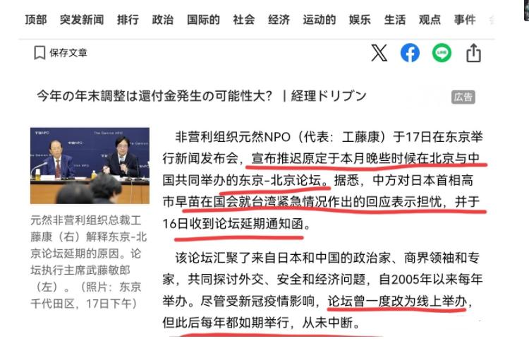 日本麻烦大了!东京-北京论坛被暂停!11月17日,根据日媒报道,日媒称,原定于本