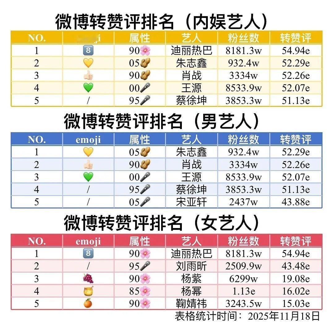 内娱艺人大眼转赞评排名11月拉表🌸🥜🎤