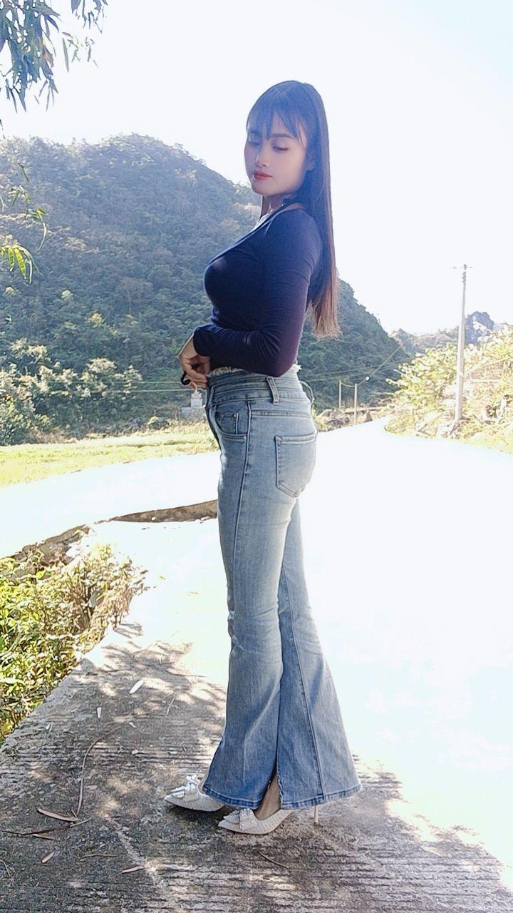 牛仔裤穿搭 紧身牛仔裤 山里姑娘