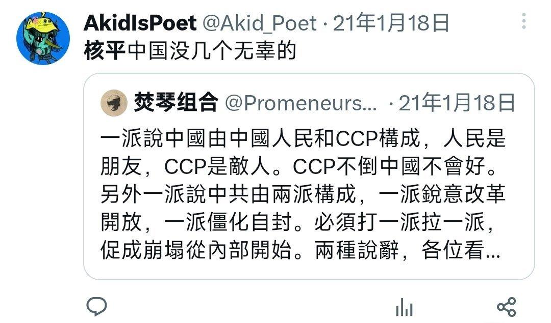 在中国做汉奸的成本也太低了,在推特上口嗨两把也能成为汉奸
