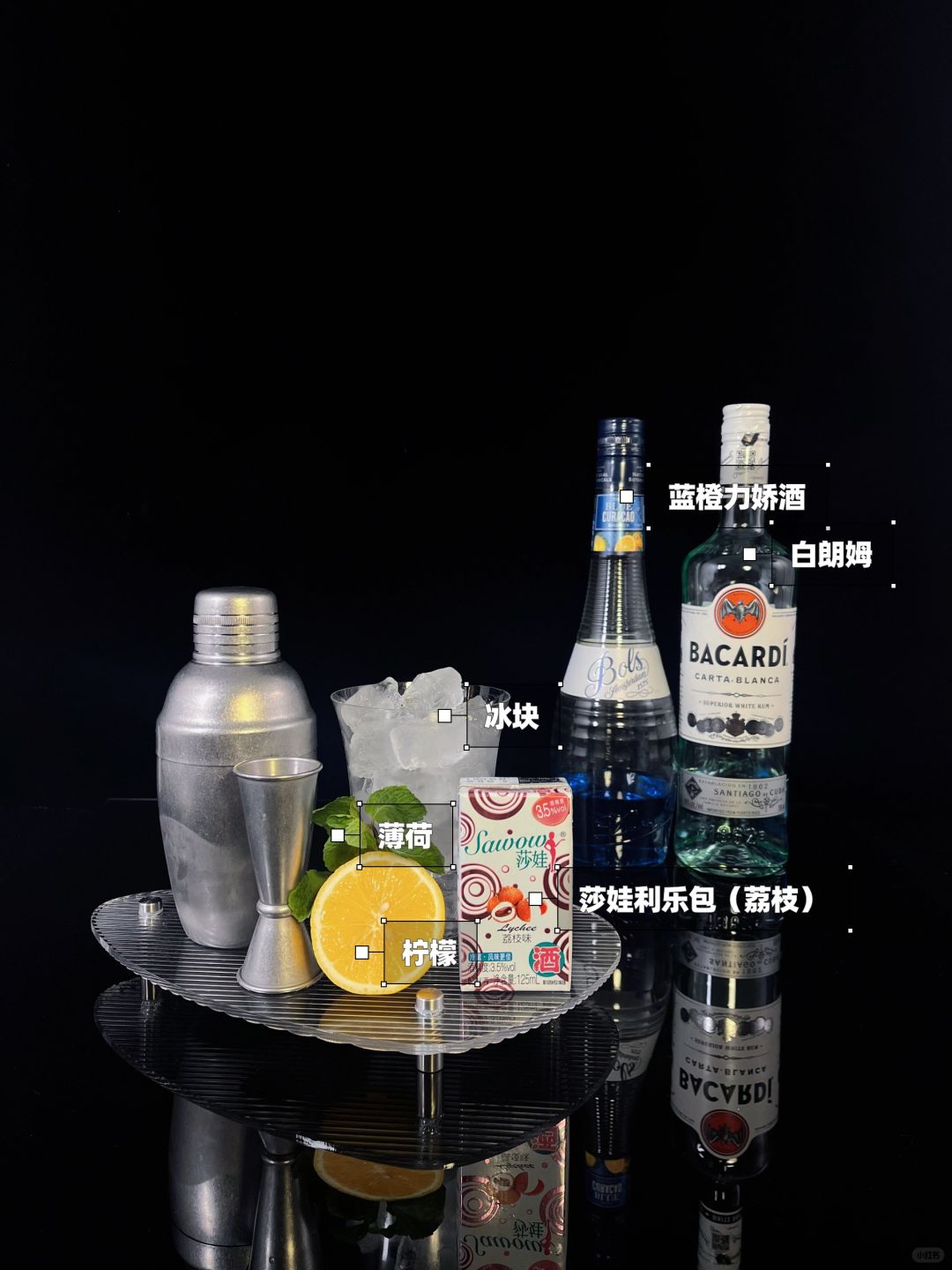 秋露拂荔枝, 轻抚冰肌蓝雾迷。 浅酌一杯双醉意, 玉润芳香酒满溢。 - 朗姆酒与莎娃(荔枝味)酒的相遇,交织出令人陶醉的美妙口感,味蕾跳跃的荔枝果香与酒精的融合,带来了一份独特的悦动,每一口都散发这浓郁的香气,蓝橙利口酒与薄荷味道在酒底暗藏。如丝绸般清新棉柔,仿佛触摸一片妙曼的蓝雾,光辉相映成趣。 整体口感清甜又不失后烈,分层诱人,给你带来独特的视觉与味觉的双层享受,快拉上你们的酒搭子一起试试!~ - 配方Formula 白朗姆---------------------------35ml 莎娃利乐包(荔枝味)-----------60ml 薄荷叶--------------------------10ml 蓝橙力娇----------------------- 25ml 柠檬汁--------------------------半颗 - PS:Sawow莎娃利乐包还有多种口味,小伙伴也可以试试不一样的特调味道