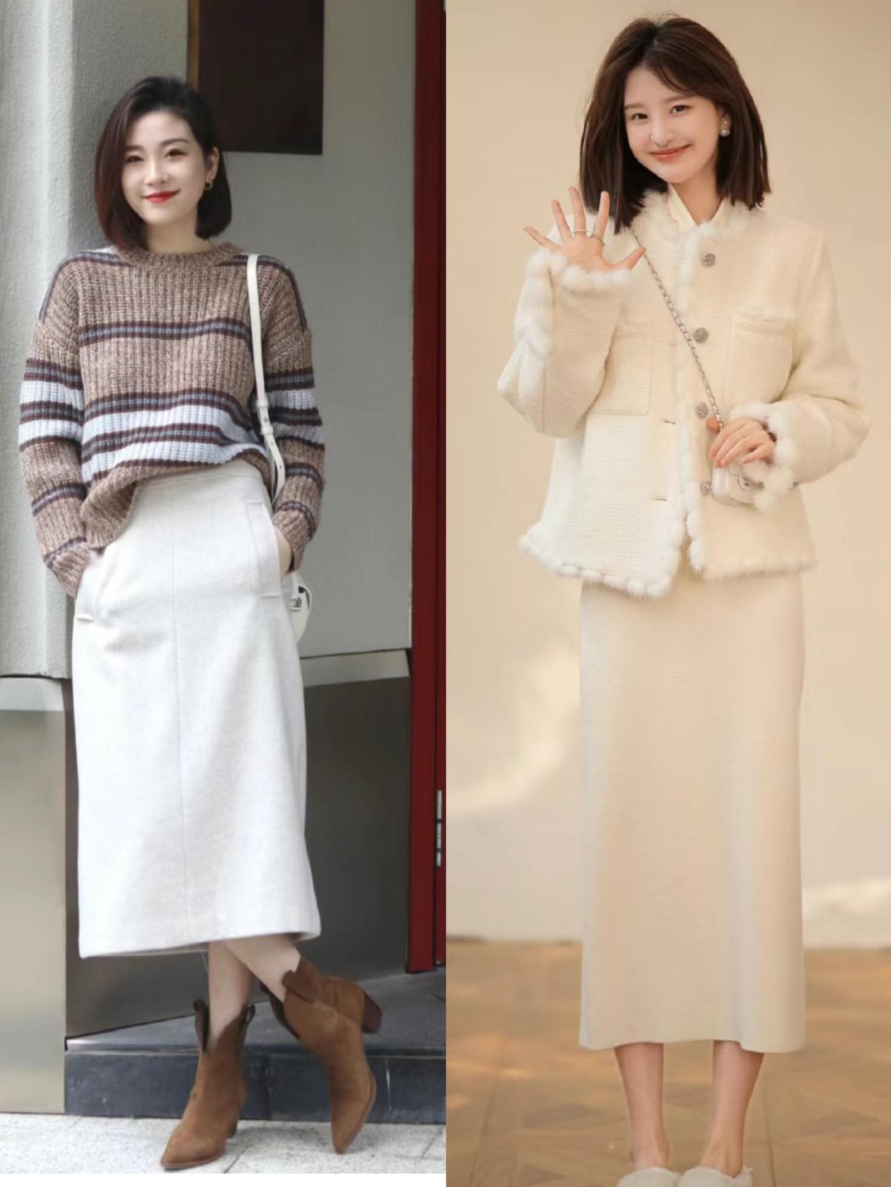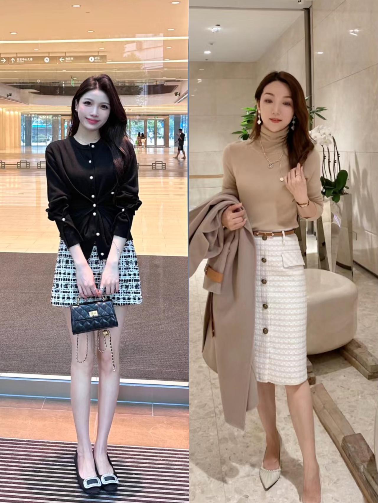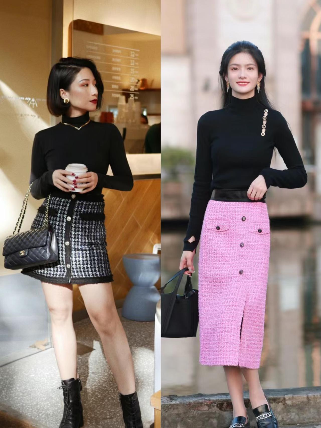 “小香风裙子”又火了,解锁四种搭配方式,时髦优雅尽显女神气质 小香风裙子在秋冬季节非常流行,可以通过搭配衬衫、针织衫、皮草外套和双面呢大衣等多种单品,打造不同风格的造型。可以选择过膝的长款,搭配及膝长靴,增添时尚感。精致的配饰也能为造型加分。