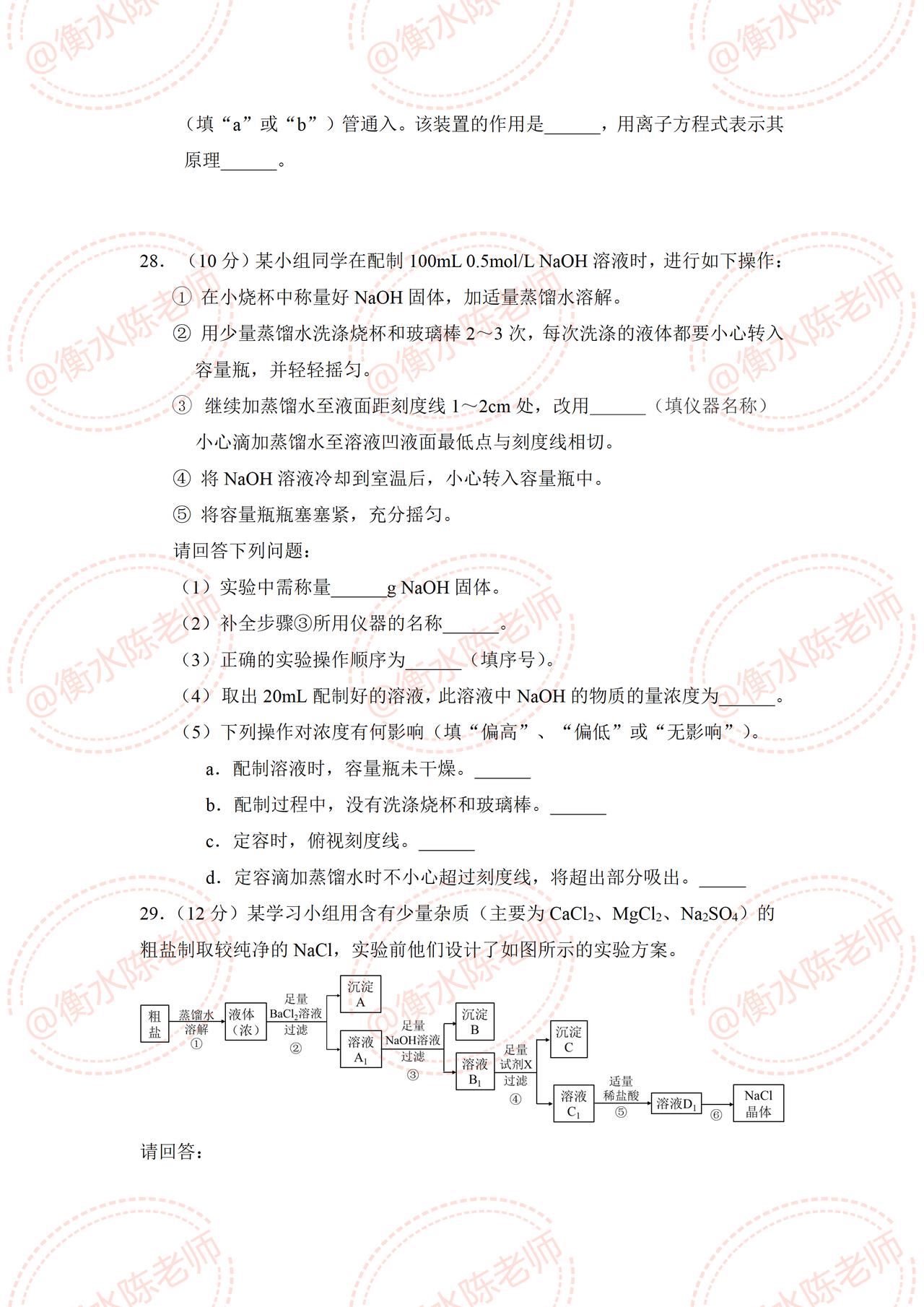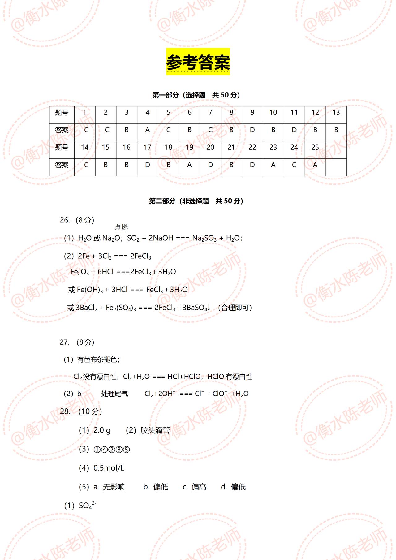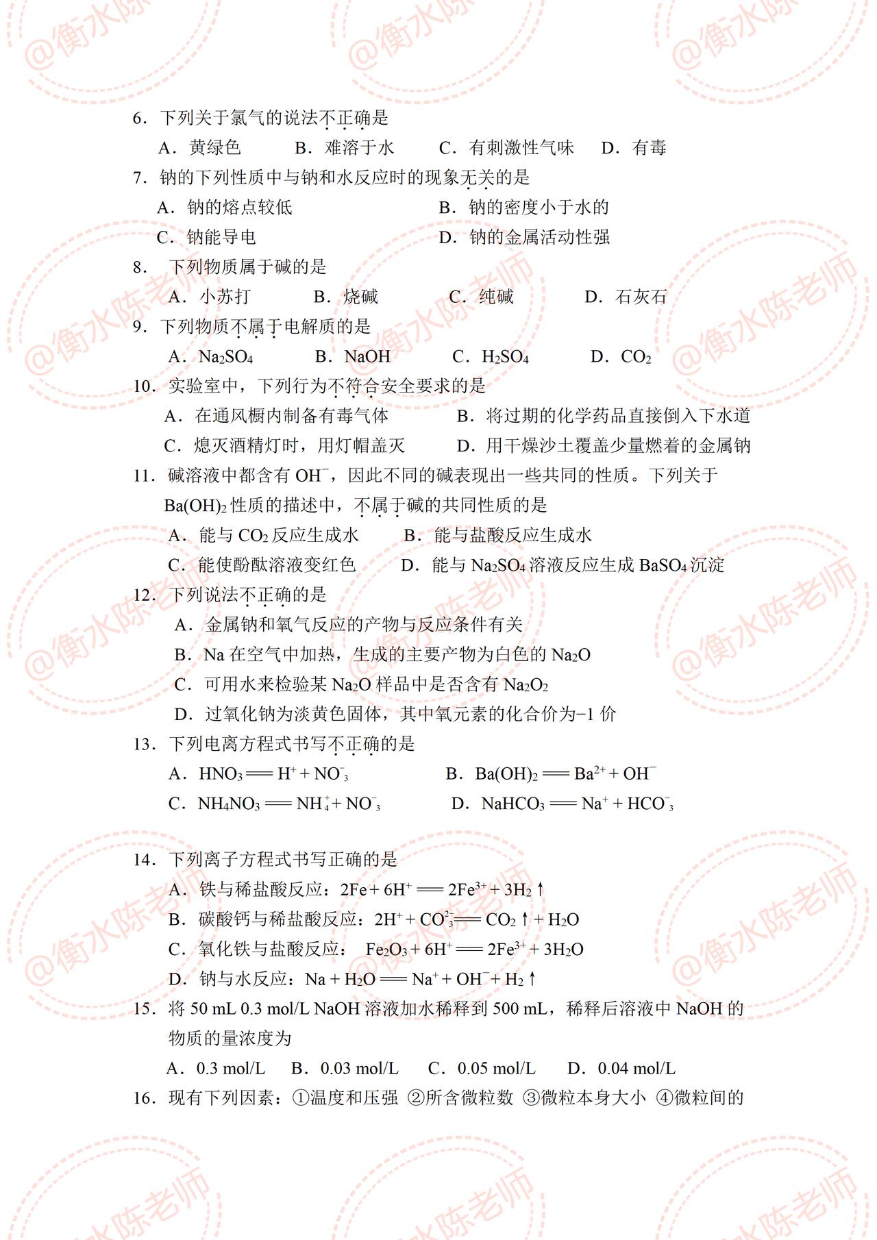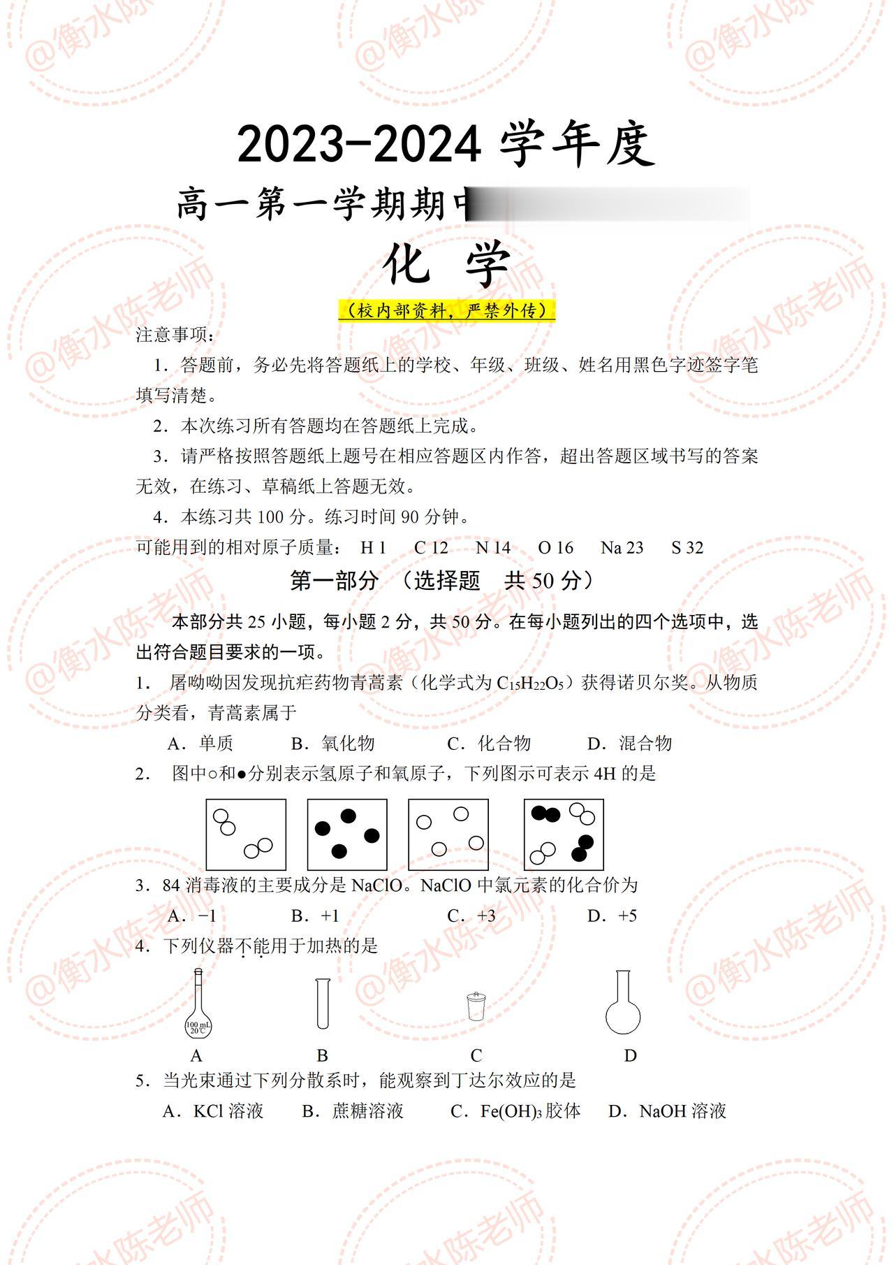 高中必修第一册化学,期中考试必出重点考题,期中卷根据不同的省份,高考重点编写的,想要获取自己城市对应期中的,记得和我沟通一下哦。
