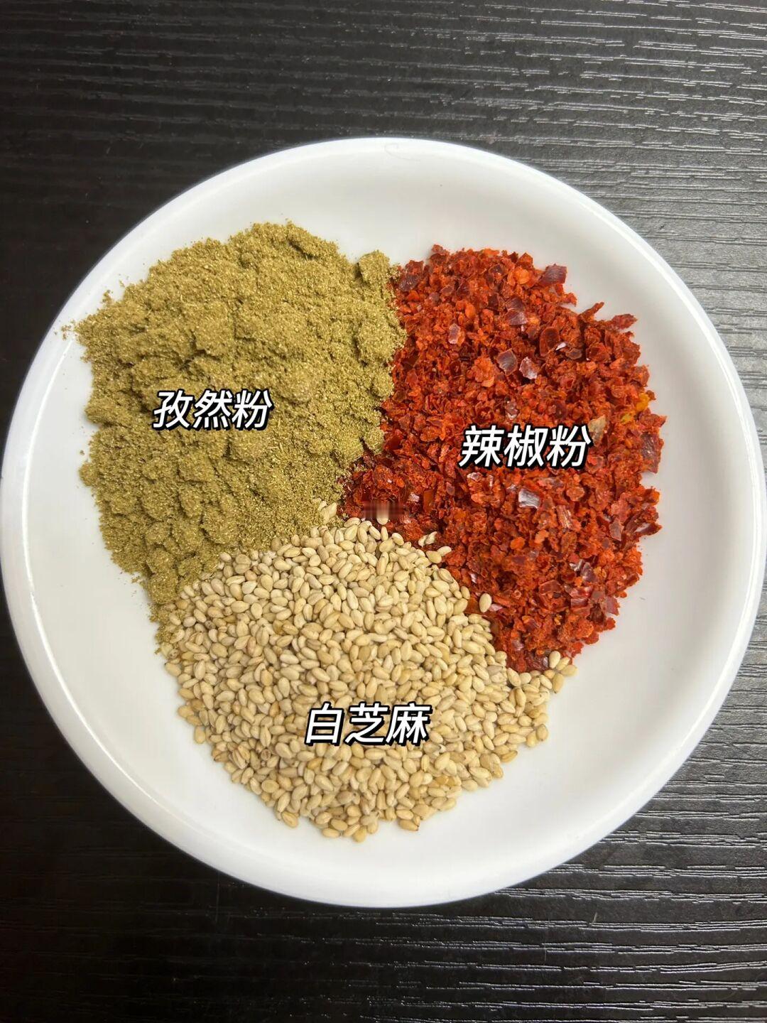 3⃣️加入盐、生抽、孜然粉、辣椒粉、白芝麻拌匀,继续烤2分钟,撒上葱花出锅,把这些跟炸鸡放一起,撒上欧芹碎