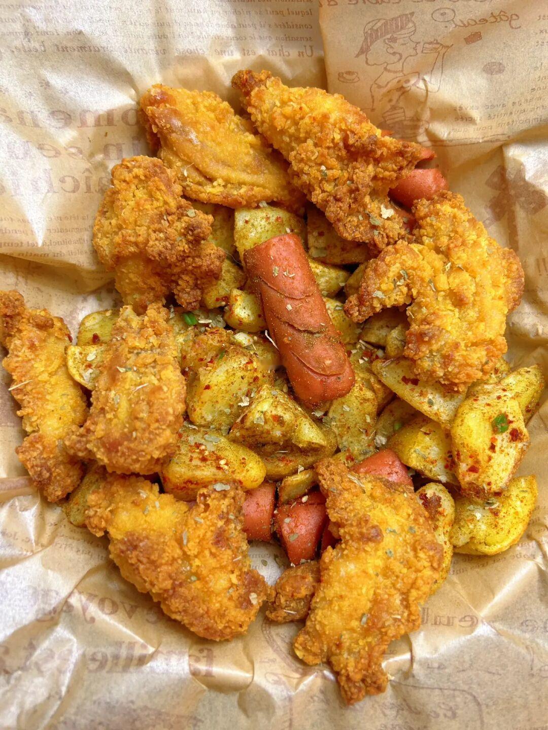 我妈做的这个炸鸡拼盘太好吃啦!!