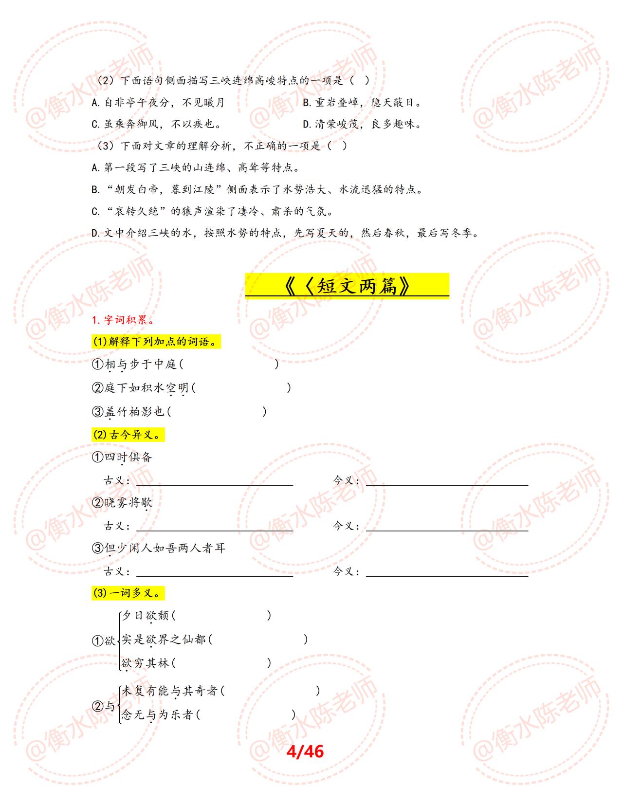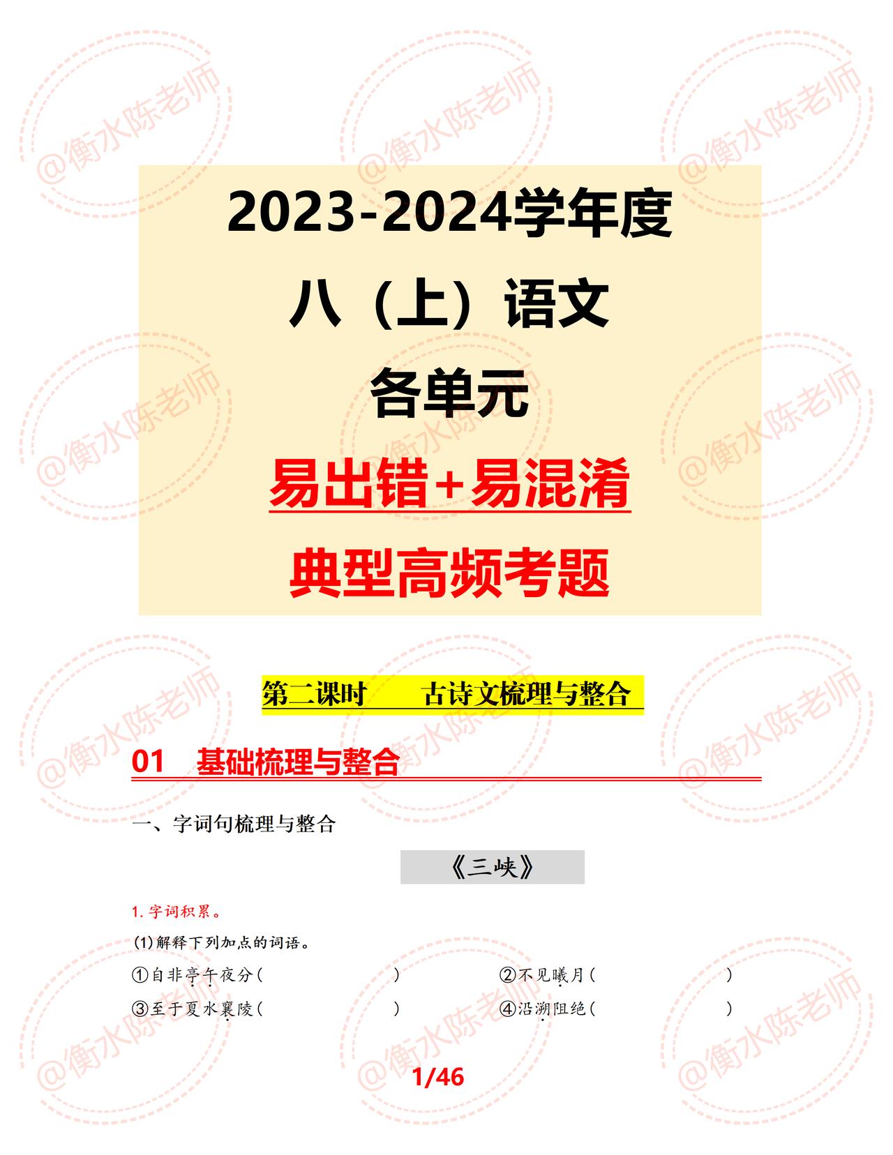 八年级上学期语文,各单元易马虎、易出错,易扣分的重点考题,提前给大家发出来练习一遍,每道题都是考试中经常出现的,吃透这份考题,考试让你少走很多弯路,多考分数哦,各单元易错、常考热点考题,是根据不同的城市、版本编写的,想要获得全部资料,记得和我沟通聊一聊哦。