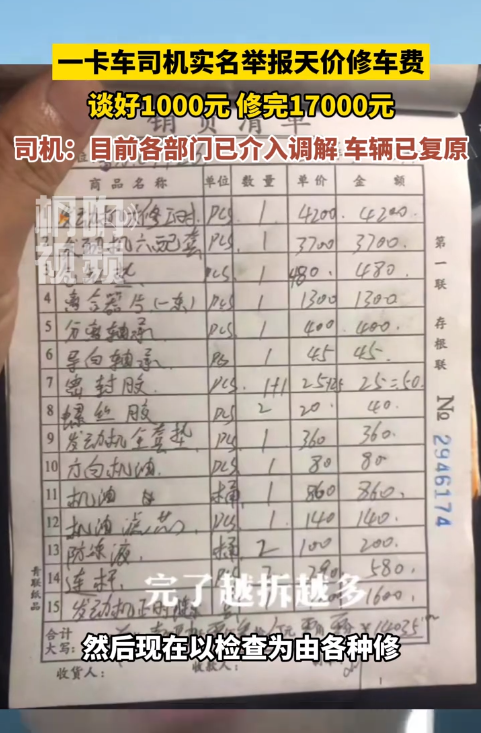 江西这次彻底火了!房东“提灯定损”还没落幕,江西又出大瓜,修车费1000元秒变17000元!司机让拿出换下的配件,修理店却要求先买单!司机无奈报案,但修理店却当着民警的面把轮胎卸了,然后拿着锤子嚣张扬言:不给钱耗死你! 一场普通的修车经历,竟然演变成了一出闹剧。江西新余一家汽修店先是向外地卡车司机开出1000元左右的维修报价,随后却直接宣布要价17000元,而且拒绝出示被替换的旧配件。 最匪夷所思的是,在警方到场后,该修车店老板当街拆卸了司机的车轮,并挥舞着铁锤威胁"要把你烧死"!一时间,这起"提锤留车"事件在网上引发热议。 2024年3月29日,外地卡车司机老王开着满载货物的大卡车行驶在江西高速上。由于天气酷热,汽车出现了返工温度较高的现象。 为了保险起见,老王决定在新余城际下高速,找一家道路旁的修车店简单检修一下。修车店老板打量了老王的卡车后,开出了1000元左右的维修报价。 由于行程十分紧张,老王只好勉为其难地答应了。他以为这只是一个小毛病,很快就能修好上路。 然而,接下来的情节出乎意料。修车店修理之后,老王被告知需要17000元的修理费!这是何等天价?比最初的报价足足高出了16倍! 面对老王的质疑,修车店老板摆出了一大堆单据和材料清单,强硬地表示,在没经老王同意的情况下,他们已自作主张更换了多达18件配件,因此导致费用高昂。 老王看着那些材料,一脸茫然。除了看到两瓶防冻液的费用外,其他一大堆零部件他完全看不懂。然而,当他把防冻液罐打开之后,却赫然发现里面依然是空的! 面对修车店摆出的天价单据,老王自然是断然不承认的。他质疑说:"你们自作主张更换配件却不和我打招呼,怎么能认账?况且我也没看到有哪些配件被更换了,你们得拿出来给我看看。" 老王的诉求非常合理,但令他万万没料到的是,修车店老板竟然阴森森地回绝:"你得先付钱,然后我才给你看配件。" 这无疑是一种典型的敲竹杠行为!老王当即愤怒地表示:如果真的有坏的配件被换下来,当然会付费,但你得先拿出来给我看看啊! 双方就这样僵持不下。最终,老王被迫选择报警。可警察到场后,那修车店老板依然嚣张到了一个令人发指的地步。 他竟当着执法人员的面,强硬地拆下了老王卡车的轮胎和部分发动机零部件,还不停挥舞着大铁锤,嚣张地威胁说:"不给钱就耗死你!" 可怜的老王欲哭无泪。一辆完整的卡车是他赚钱的命根子,可如今半拆卸的状态,不但无法继续行驶,就连原有的配件也无从查证了。 望着被拆得精光的卡车,老王陷入了进退两难的困境:要是不给钱,车被扣押他就彻底无法工作赚钱了;但要是掏钱17000元,他前几个月的辛苦血汗钱就要打了水漂。 最终,老王选择将这一被"修车店劫持"的经历发布到网上,祈求网友的支持和监管部门的关注。 很快,这一曲高亮极具戏剧冲突的"修车闹剧"就在网上引发了热烈讨论。有网友痛斥说:"这分明就是敲诈勒索,警察竟然拿修车店没有办法?" 也有人讽刺道:"江西这些天简直就是重大事件连台戏,提灯定损、四孩非亲、天价彩礼、修车敲诈,接下来还有什么好戏上演?" 当地一些做修车生意的人对此也深有体会:"我们这一行,从来都是先商量好价钱,如果中途加项就必须事先通知顾客并征求同意。这家店是彻底吃了霸王餐!" 细细剖析这出"修车闹剧",不难发现其中暴露出的问题:这家修车店在服务流程上存在严重漏洞。 在没有得到顾客允许的情况下,私自调换附件,这是对顾客的一种极大的侵害。而且,报价和收费标准的随意更改,也是对顾客自主消费权的肆意蔑视。