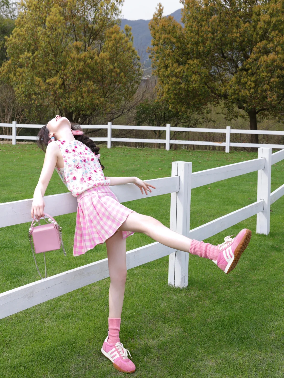 公园拍照ootd每日穿搭 粉色系穿搭不费力穿搭粉色少女心 少女感穿搭 彩色穿搭 短裙穿搭 时髦单品 来拍照了春日踏青 一起去春游 好穿又好搭 公园拍照姿势