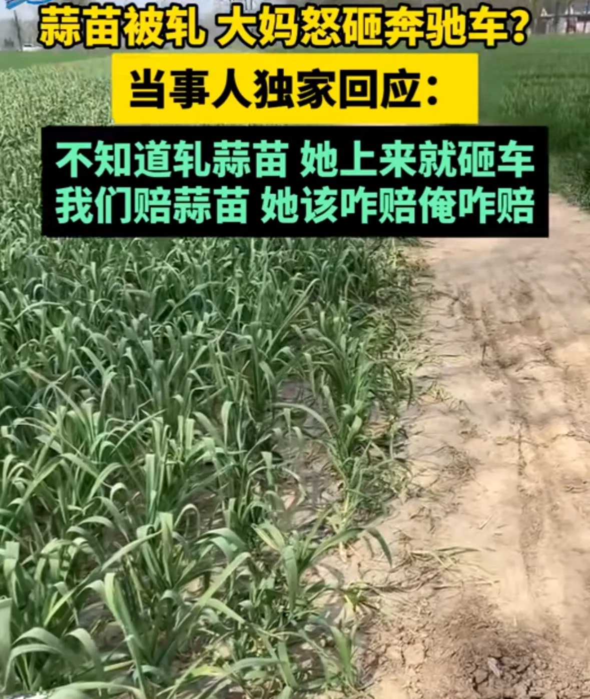 何梅表示:我该咋赔她的蒜苗咋赔,她该咋赔我的车也咋赔。