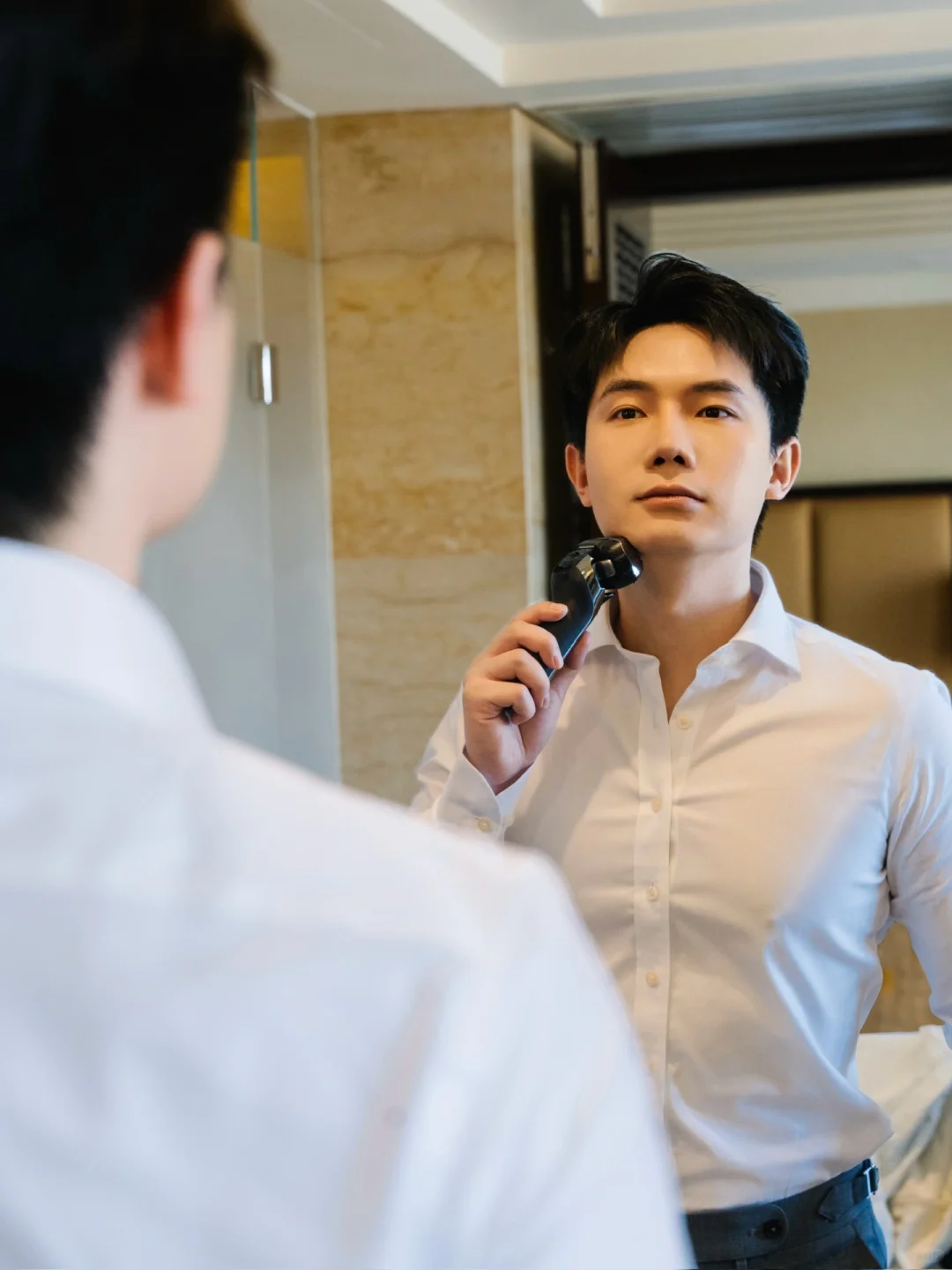 面部洁净,棱角分明,讲究还不油腻