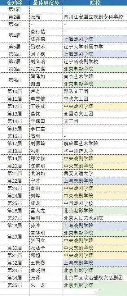 金鸡奖影帝大多数毕业于北电中戏上戏等专业院校或单位是文工团体制内,难怪不待见王宝