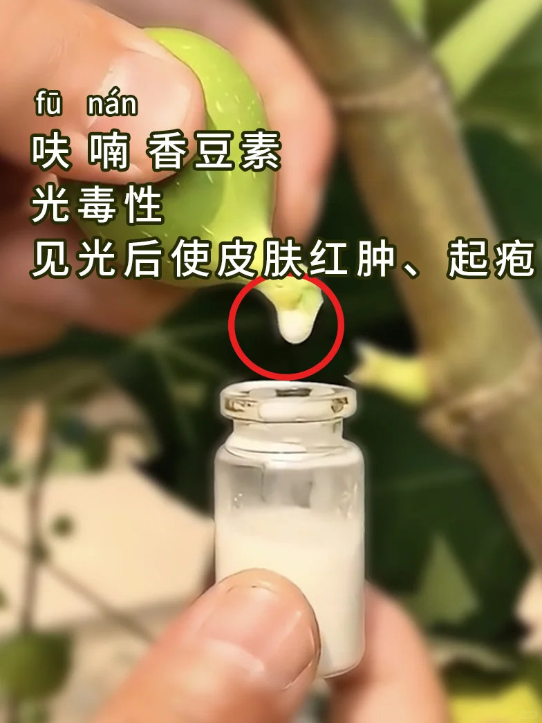 无花果枝叶的白色汁液里,有“呋喃香豆素”,接触它们可能会引起严重的光敏皮炎。