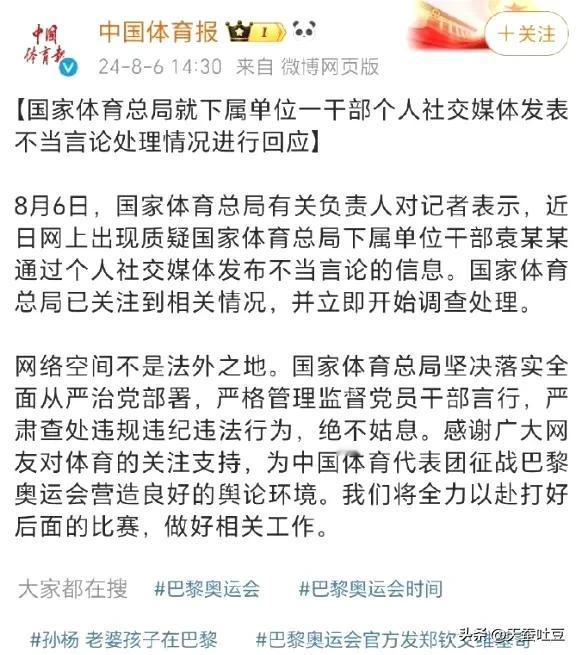 回应说是发布不当言论,我觉得是不妥的,这是定性错误,请参考金灿荣教授 的评论:它是恨国党,两面人 。 另外,袁昊然在法国巴黎删微博,删完了才知道可以申请关闭账号,他玩儿了这么多年微博,只能说太蠢了。 他关闭账号之后,又先禁言,后又官方封号了。这种情况,之前没见过。#袁主任删# #官方回应体育总局干部发表不当言论#