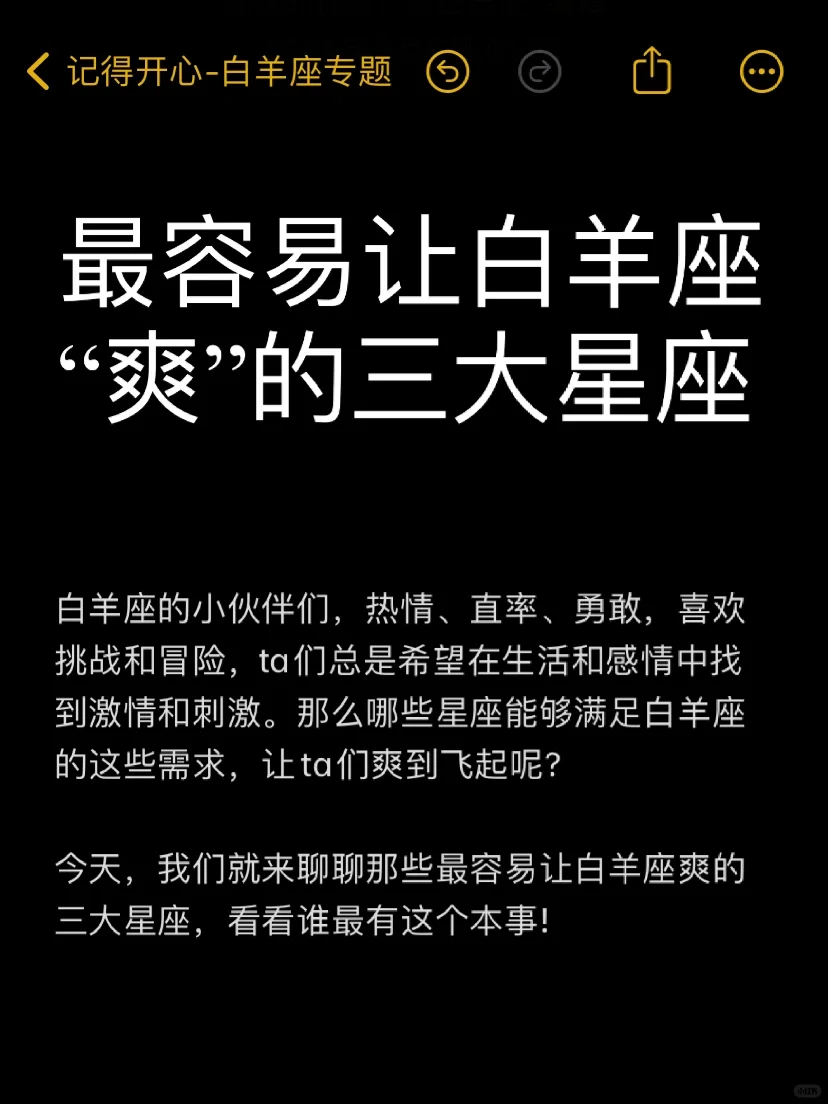 哎呦喂,白羊座的激情不是谁都能点燃的,狮子、射手、双子,你们是真敢挑战啊!但别忘了,爽过之后,白羊可不好哄哦!