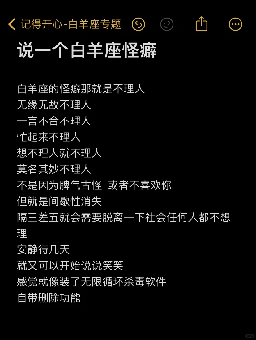 说一个白羊座怪癖