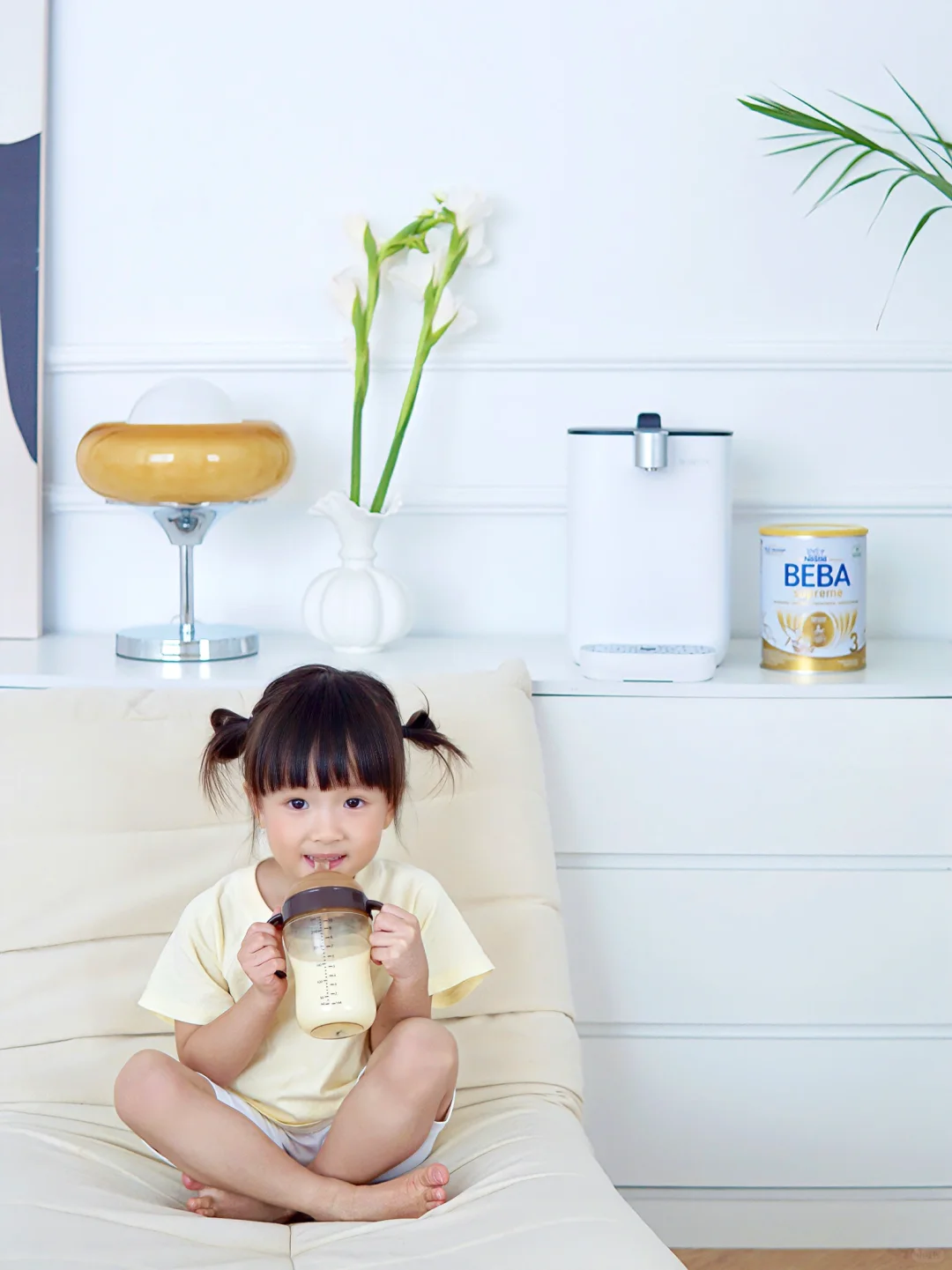 菲宝每次都要帮忙冲奶,贴心的童锁保护也让日常用水多一层安全保障。