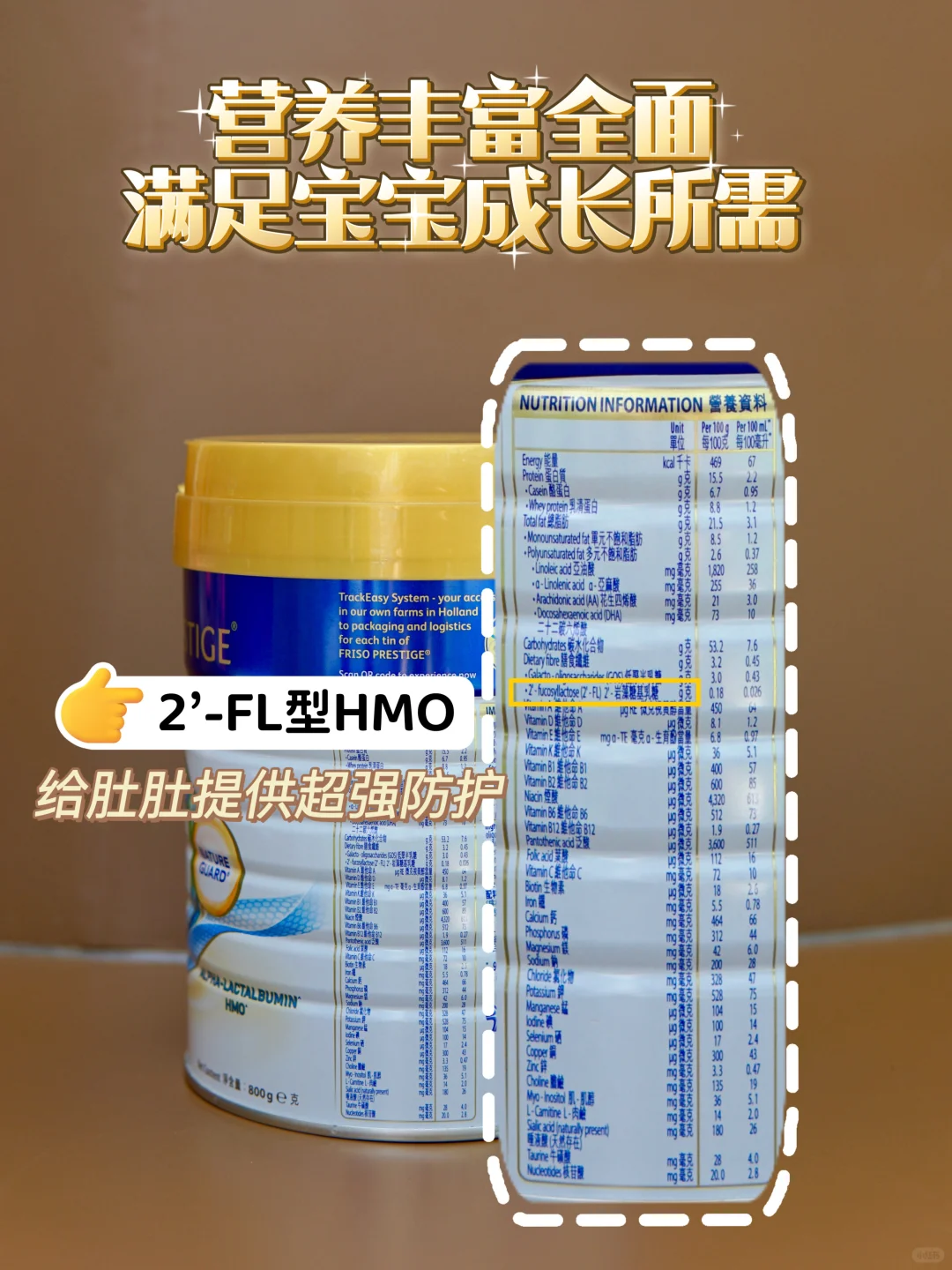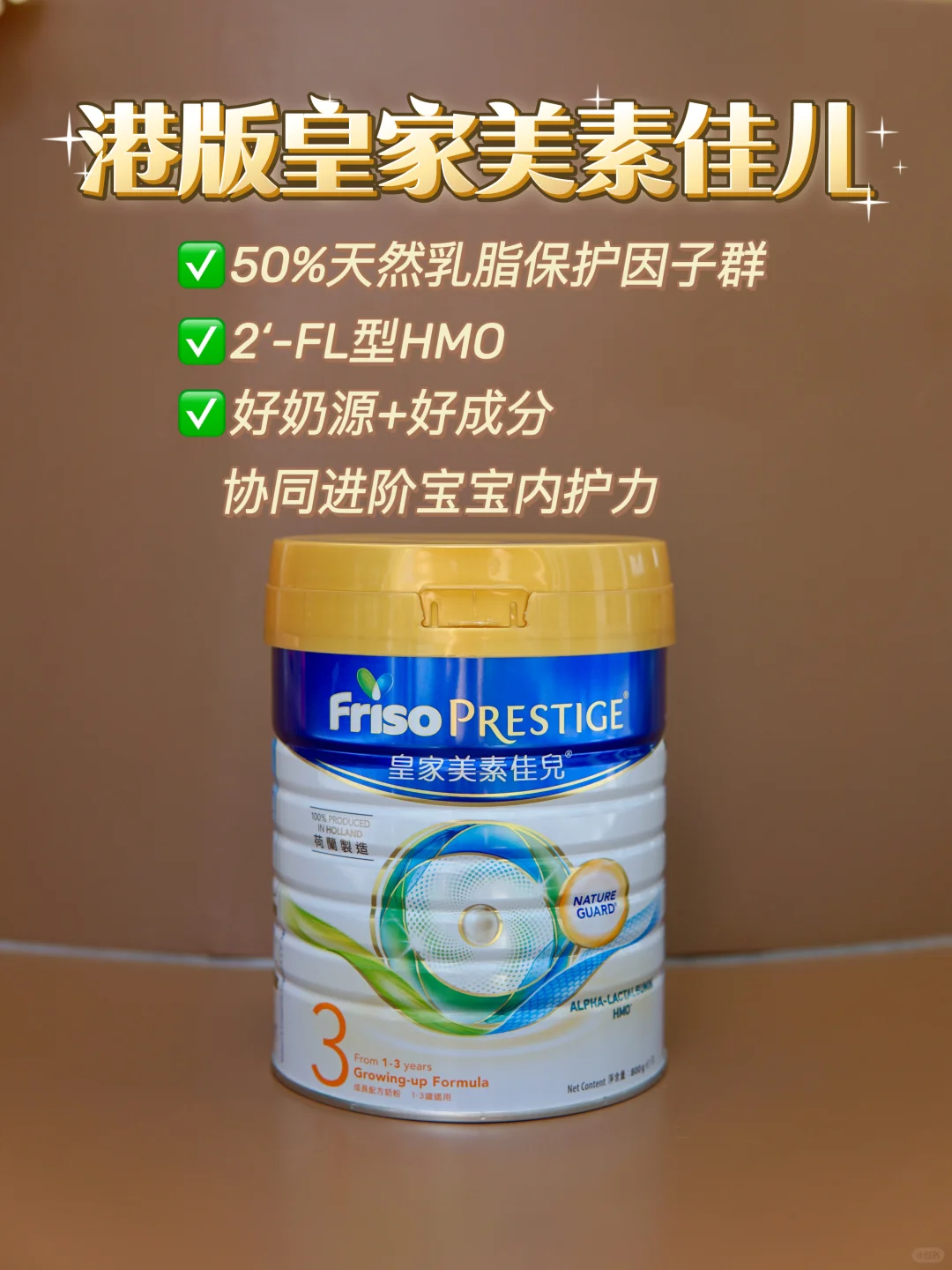 这款奶粉的奶源来自荷兰自家牧场,奶源纯净天然,关键还含有50%天然乳脂保护因子群,可以提升宝宝肠道屏障健康,调节肚肚内在环境,呵护宝宝小肚肚,天然OPO促进营养吸收,为长肉长个打好地基~ 肠道健康了营养吸收好,身体自然棒棒滴!
