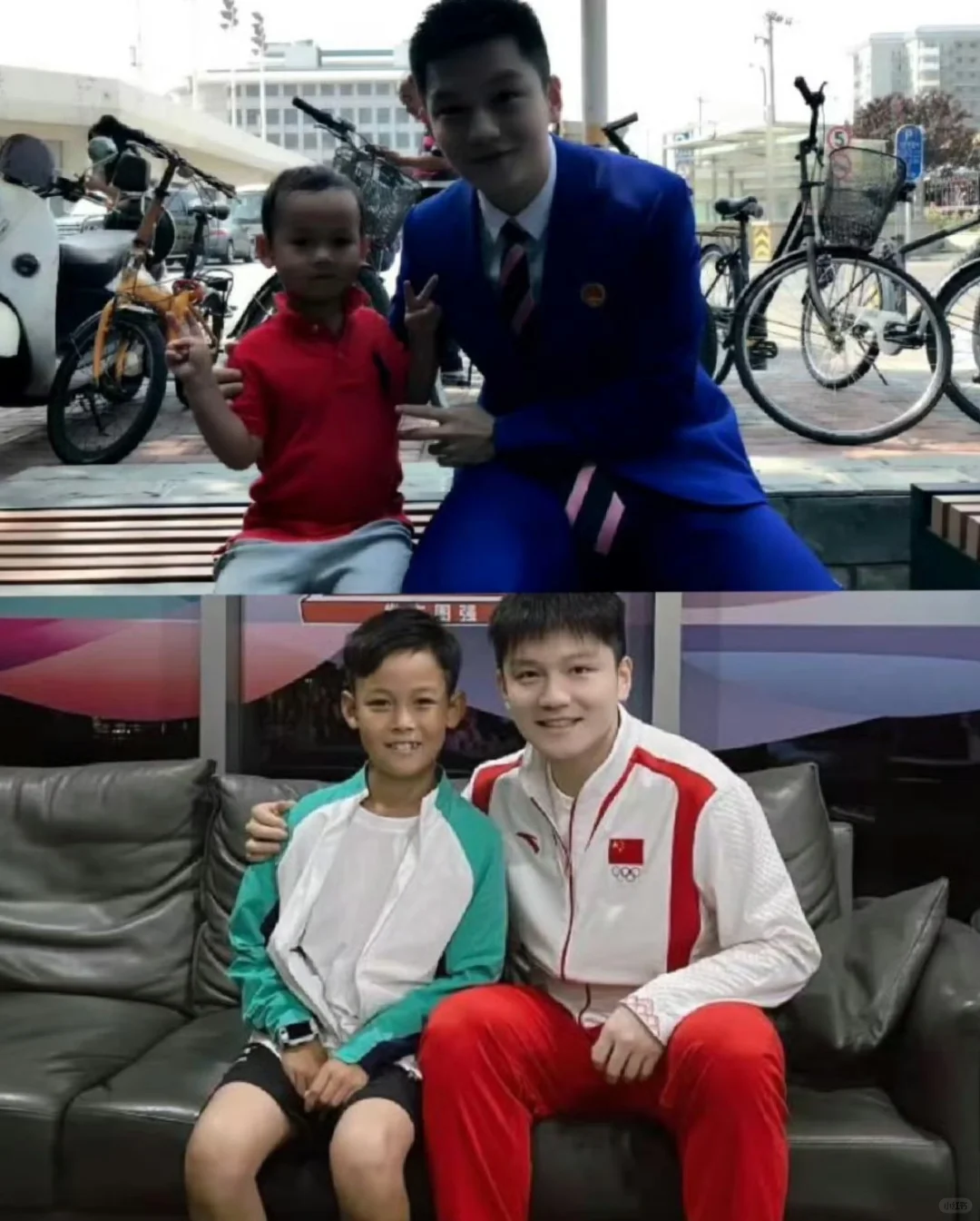 看到樊振东与王皓指导大儿子海苔的合照,时间过得好快啊,那个喊着“小胖叔叔加油~”的小朋友长大了,小胖也成了超级全满贯!