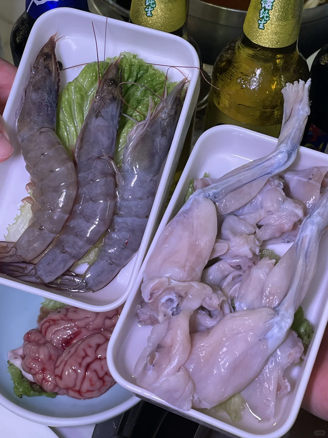 鸭肠,脑花,毛肚,黄喉,牛蛙,鸭肠等,真是太多了,都是冰鲜的,超级美味