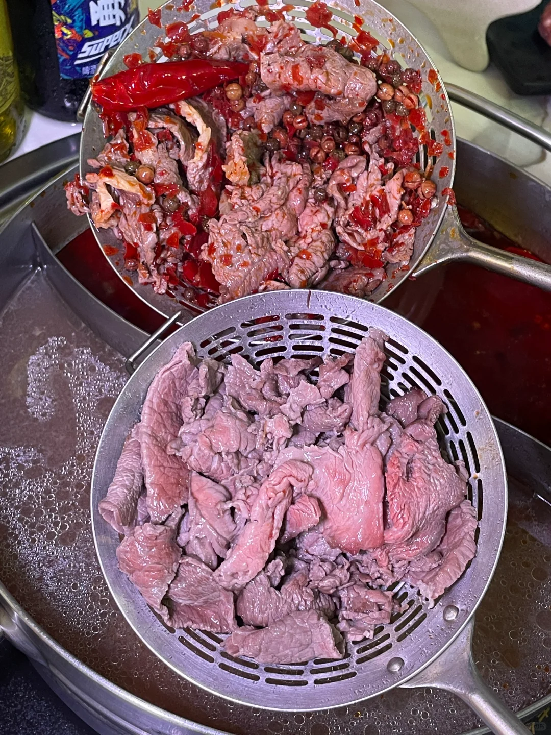 所有牛肉均为当日鲜肉,新鲜现切,不用冷冻肉,肉🥩的品质上乘!牛肉的品种🉑真多,有嫩肉、三花趾、五花趾、匙柄、匙仁、脖仁、吊龙、牛肉丸等等,目光所及,皆是牛肉,鲜嫩的匙仁、弹牙的五花趾等等,每一款都是我的心头好,都想尝一尝,入口鲜嫩多汁,牛肉味浓郁,实在是妙不可言!