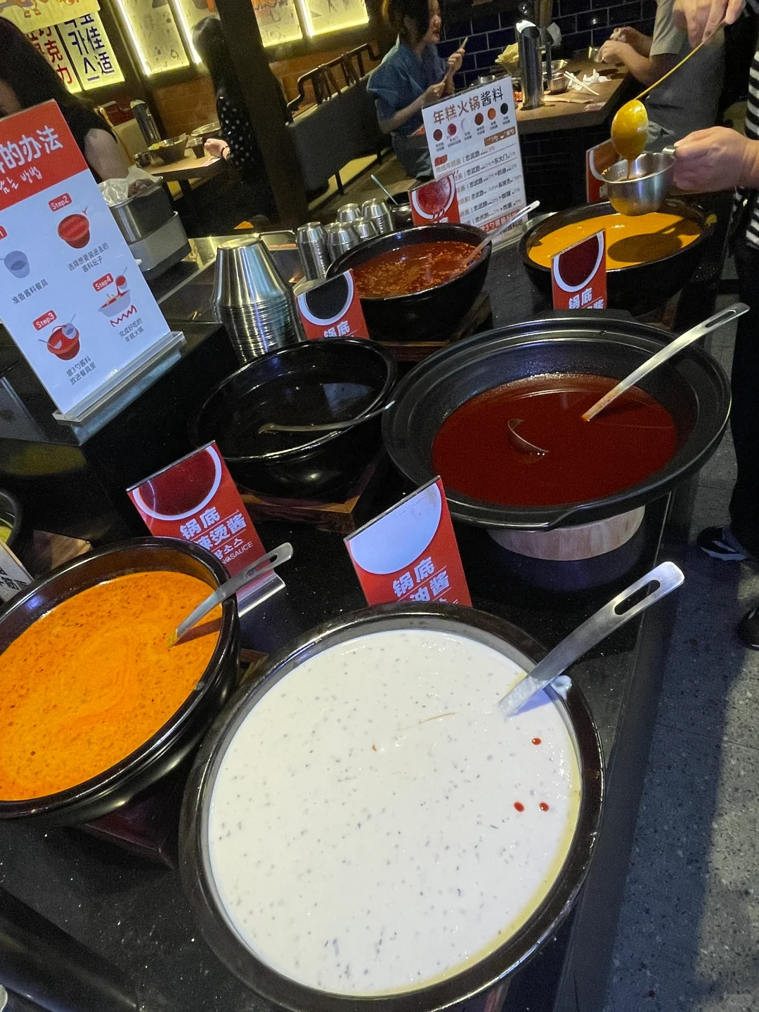锅底可是店里的一大特色,一共有六种酱料可选,快来DIY一个与众不同的特色锅底吧,建议放三大勺。🥄