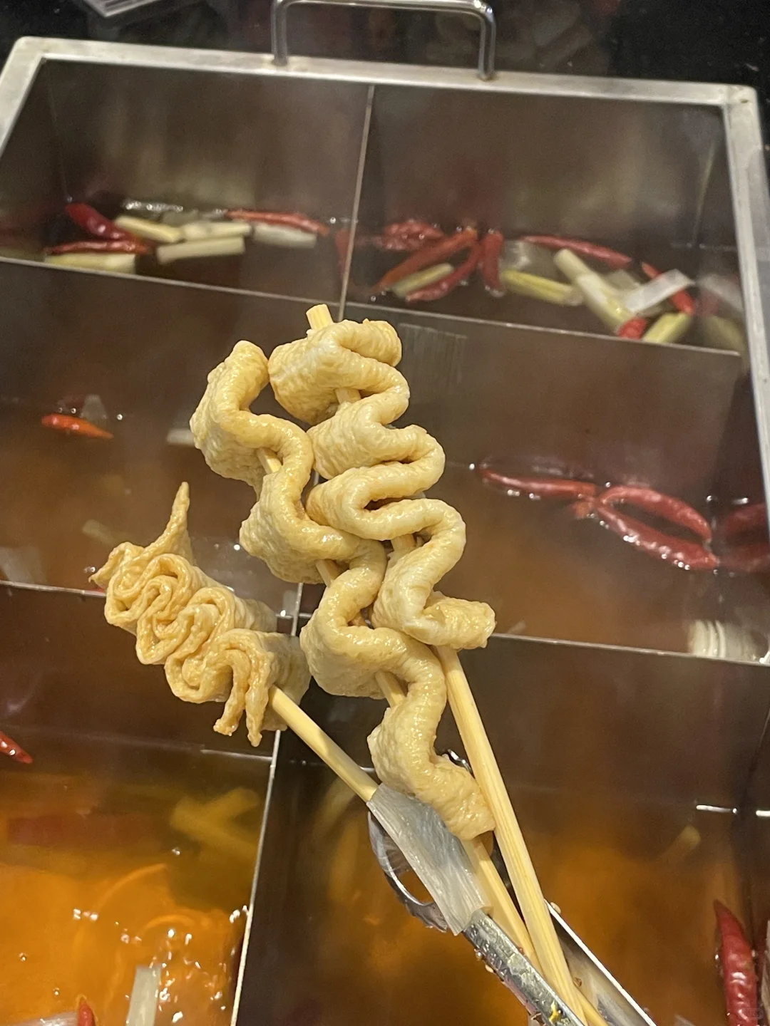 🐟韩式鱼饼串也很值得一试!鱼饼鲜美,口感扎实,串在竹签上吃起来非常方便。煮在火锅里吸收了汤汁的味道后更加美味😜。