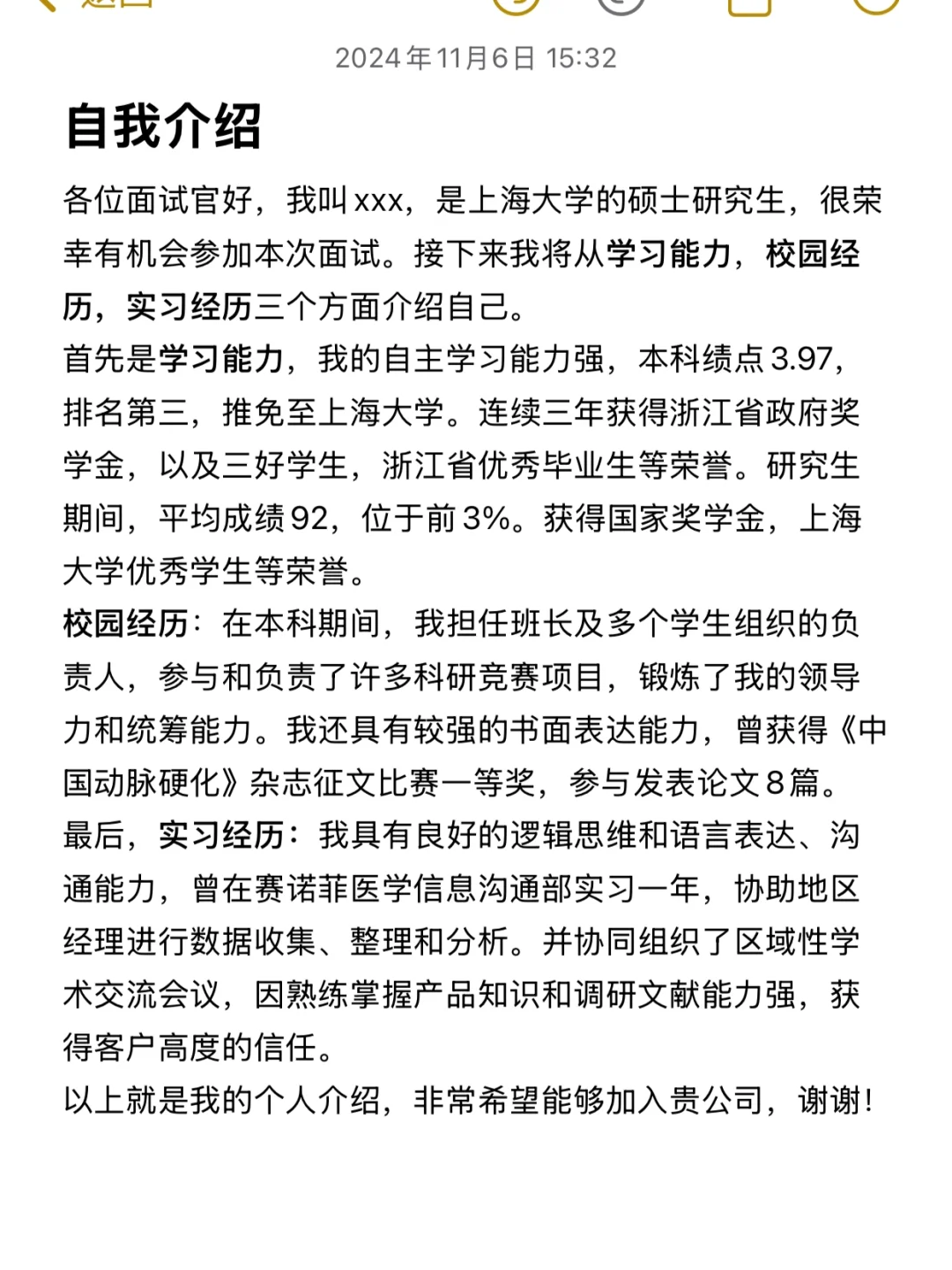 你要不侧重讲一下你和岗位适配的特质,强调一下你的核心竞争力