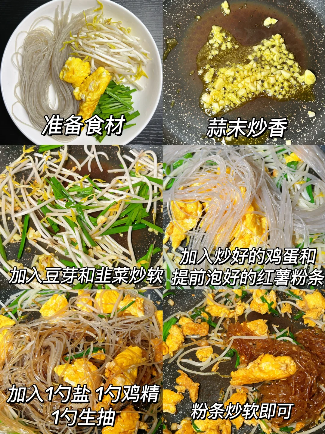 简简单单的食材 做出来就特别好吃 也不需要很多调味品 我家经常吃这个 姐妹们可以试试!! 做法都写在图上 ⚠️ps:红薯粉条提前泡好再炒哦,如果炒不软可以加点水进去防止粘锅。