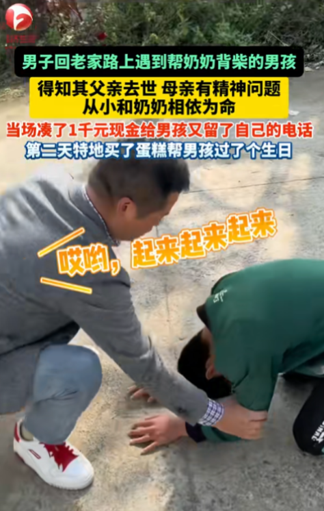 2024年安徽,一男子回家探亲时,偶遇一个身形单薄,背着大捆柴火的少年,经过询问男子得知少年家境凄惨,于是便利落留下千元现金,以及自己的联系方式,殊不知少年之后的一个举动,令其分外心疼。 麻烦看官老爷们右上角点击一下“关注”,既方便您进行讨论和分享,又能给您带来不一样的参与感,感谢您的支持! 安徽无为,一个瘦弱的身影,蹒跚地出现在秦先生的视野里,这并不是什么惊天动地的画面,只是一个普通的农村少年背着一捆柴火,吃力地行走,那捆柴火对于少年单薄的身躯来说,显得过于沉重,几乎将他压垮。 少年的身后,跟着一位老奶奶,颤巍巍地伸出手,似乎想帮孙子分担一些重量,却又无能为力。 秦先生是一个生意人,回乡探亲的路上,目睹了这一幕,他看到少年额头上细密的汗珠,即使在微凉的秋风中,也清晰可见,他看到老奶奶佝偻的背影,仿佛在无声地诉说着生活的艰辛。 秦先生走近少年,想接过那捆柴火,少年有些犹豫,眼神透露出戒备和不宁,或许是秦先生身上干净整洁的衣服,让他担心被柴火弄脏,秦先生看出了少年的顾虑,于是提议开车送他们回家。 简陋的房屋,映入眼帘,冷风直往屋里闯,房间显得更寂寞了,柴火被安置好后,老奶奶招呼秦先生进屋休息,天色渐晚,屋里却只有祖孙二人。 一种异样的感觉涌上秦先生心头,老奶奶缓缓道出了这个家庭的变故,少年的父亲,多年前因意外去世,母亲受不了打击,精神恍惚,常年卧病在床,姐姐十几岁就外出打工,微薄的收入勉强维持着一家人的生活,就连这间房子,也是村里人凑钱帮他们盖的。 这个家庭被不幸紧紧缠住,就像被一张大网困住了,孩子变得不爱说话,有点孤僻了,即使在奶奶面前,也很少说话。 他心疼奶奶,心疼姐姐,周末主动承担家务,默默地为这个家付出,秦先生听完,心里五味杂陈,他翻遍了钱包,将身上所有的现金都拿了出来,并留下了自己的联系方式,鼓励少年遇到困难随时联系他。 这句话像冬日里的一缕阳光,照进了少年的心里,男孩突然跪下,向秦先生磕了一个响头,这个举动,让秦先生措手不及,他赶忙扶起少年,眼眶也有些湿润。 秦先生离开后,心里一直惦记着这个少年,他从村里朋友那里了解到更多的情况,少年的学习成绩很好,但家里的经济状况让他无法安心读书,冬天来了为了省钱,他们只能靠捡柴火取暖。 第二天秦先生再次来到少年的家,他送来了礼物、零食和一些日用品,他还给那个小孩儿做了一个生日蛋糕,这是少年人生中第一个生日蛋糕。 少年脸庞映着烛光,显得有些稚气,他的嘴角,不自觉地露出了微笑,这微笑是如此珍贵,如此动人。 秦先生心里埋下了一颗希望的种子,他知道这仅仅是一个开始,他决定资助少年完成学业,让他有机会改变自己的命运,他还联络了公益组织,想着能多帮帮这个家。 秦先生只是简单的行动,却像冬日里的一束微光,照亮了这个困境中的家庭,也温暖了无数人的心, 麻烦看官老爷们右上角点击一下“关注”,既方便您进行讨论和分享,又能给您带来不一样的参与感,感谢您的支持! 信息来源:大象新闻